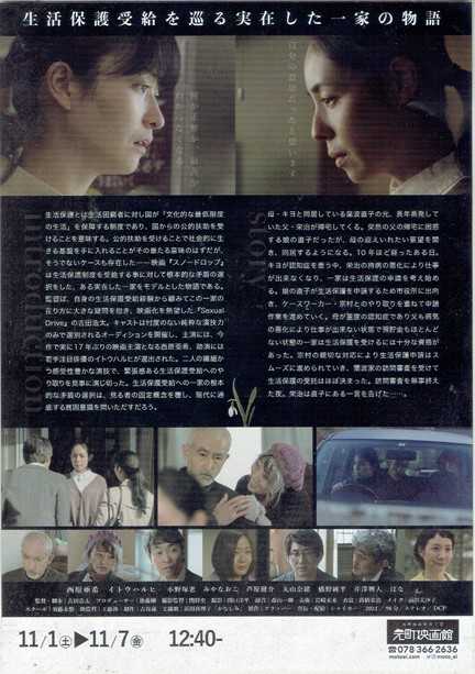 です。西原亜希さんの表情に唸りました。 映画は 現代社会の実相 とでもいう、 貧困、老い、痴呆、家族離散、セイフティー・ネットの実態 を一人の孤独な女性を描くことで突き詰めていくことを狙っている作品だと思いましたが、筋を追うことに真面目過ぎて、手際のいい作品とはいえない印象でした。