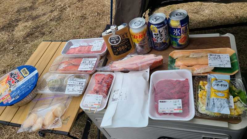 本日の食材です。この後の暴風で 焚火
