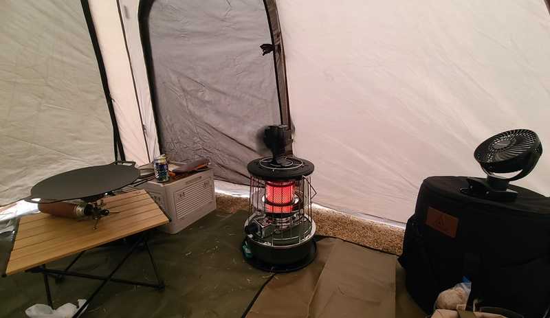 外気温5℃、 テント内21℃