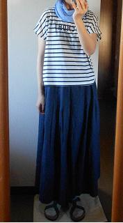 こんばんは♪夏休みに入って一週間。中1になった娘、今日は部活も休みだったので美術の宿題「静物画」に取り組んでました。我が家は少しだけど家庭菜園してて、その収穫物を題材に^^今月末の登校日に提出しなきゃいけないのでとりあえず完成して、一安心!終わったのはほぼ夕方だったんだけど出来上がったらサーティーワン行きたいと言ってたので近くのSCへ行って食べてきました。娘はもちろん「チャレンジ ザ トリプル」私はシングル、割高だけどね~^^;そんな今日のコーデ。GUprithitayaFrench BullBirki's sylt今日はネイビー。暑いので、楽チン&シンプルなコーデばかり^^;GUのボーダーは夏前に買ったんだけど娘のTシャツを買いに行ったついでに購入。確か680円だった(笑)でも短め丈がバランス良くて、合わせやすい♪胸にあるロゴはANCHORです^^・・・PEDALさんのさらにプライスダウン!気になるものが多くて困ります>< ボーダー多しwpritのボーダーT、スモークブルーが欲しいの☆では、今日はこのあたりで。読んでいただきありがとうございましたナチュラルさんの今日のコーデ