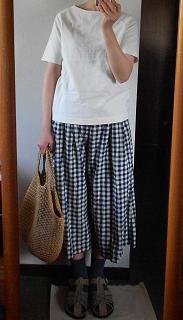 こんばんは!暑さが続いて、ついついエアコンに頼ってしまう日々。。家にいる時は午前中は我慢して、お昼にスイッチON。暑い中では食欲も出なくなるしね。そして、なるべく温かい食事をとってお風呂は湯船に浸かることにしています。そういう風にしてから、夏バテはしなくなりました。…とかえらそうに書いてるけど、みんなやってることよね^^服装は、こう暑いと重ね着する気になれないよね〜でも外出先は冷えることも多いので、持ち物にカーデやストールは必須♪今日も、Tシャツ+ガウチョ という簡単コーデ^_^;Dana Faneuilしまむら(去年の)FALKE RUNambienceTATAMI DOHA今日のダナファヌルは生成り。しまむらガウチョは黒のチェックで去年のものです。あまりにシンプルなので、Tシャツにブローチを。キナリのTシャツと色が似てて目立ちませんが目立ち過ぎると恥ずかしいお年頃なのでこれもいいかなーって(笑)ブローチ、値下げしてる〜604円!生成りと白持ってます。衿の感じがいいのです☆ 左のSHOPさんは私が購入したところですが36のみだけど、40%OFF!! さらに100円OFFクーポンもあり☆右のFLISCOさんは30%OFFです。私は普段23.5cmくらいの靴を履いて幅広の足ですが36で、靴下でもOKです☆履きやすく、ほんと買ってよかった!!・・・楽フェスのお買い物、さらに増えてます^^別日記であらためて報告しますね☆では、とりあえずこのへんで。最後まで読んでいただき、ありがとうございましたナチュラルさんの今日のコーデ