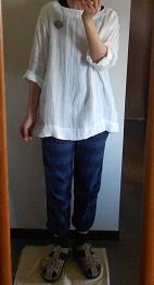こんばんは♪夏休みも折り返しです。娘は運動部に入ったので、ほとんど毎日部活があります。この暑さの中、外での練習なので大変!でも、前にも書いたように熱中症予防のためこまめな休憩があるようです。お茶とスポーツドリンクを毎回持っていくのですがいつも、見事に空っぽ!お茶は水出し緑茶が好評☆さっぱりするもんね♪ うちでは、このピッチャーにお茶パックに茶葉を入れてミネラルウォーターを入れて簡単に作ってます。冷蔵庫に入れておくといい感じの水出し緑茶ができます。買ったペットボトルの緑茶より、マイルドな味で飲みやすくて好き☆スポドリはこれが好みらしい。・・・今日のコーデです。ここで着画撮ると足元が暗くなってしまうので足元画も^^こっちはちょっと明るく写ってる^^;Green Parks(CITROISM)naruしまむらFrench BullARCOPEDICO...du nain.白ブラウスは薄手の生地なので、インにnaruのタンクを着てます。襟ぐりがあき過ぎないのがとても気に入ってます。↑30%OFF中!オススメですよ~☆インディゴ履いてます・・◇気になるもの◇ いいなぁ。。。角質が気になるこの時期、気になる☆50%OFFになった~!ほしい!! ブルーシール、初めて食べたのは修学旅行で行った沖縄で。すっごくおいしかったなぁ^^・・外出先から旦那さんが帰ってきたので、晩ご飯にします☆最後まで読んでいただき、ありがとうございました! ナチュラルさんの今日のコーデ
