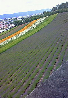 ファーム富田 彩りの畑二日目レンタカーで(ほとんど皆さんレンタカーだね)富良野へ。ドライブしながら思うのは、北海道の広大さ。いや~、こういう景色の中で生活したら人生観変わるかも。道路の広さと一直線は、お見事ですわ。雪が深いのも信号機が縦になっていることや、わざわざ「中央線」と大きく標識に書かれていることなどでよく分かる。冬場は大変なんだろうなあ。でも、こちらも雪国なんで共通点も多いんだけどね。快適なドライブ(私は運転しなかったけど(笑))でした。さてとにかく「ファーム富田」ですよ。ちょうどこのラベンダーが満開。この品種は濃い紫なんで余計に見事だ。香りもいいしね~~。お土産の店舗に入ると思わず足が止まっちゃう(笑)ポプリとかラベンダーのパフューム、化粧水などなど私「香り」が好きなんだよね~~、ラベンダーを基調にしたパフュームがいろいろあってあれこれ楽しんじゃった。で、やっぱりラベンダーの香りとムスク系の香りを買ってしまった^^)V!この富田ではラベンダーオイルの精製から、せっけんや香水作りも見られるね。香水作りをされている方の帽子がかわいいので注目よ^^)そうそうラベンダーソフトも必食だ。もちろんファーム富田さんの中で。自然なんだよねラベンダーの香りが、以前どこかでラベンダーソフトを食べたけど人工香料だったようで口の中がラベンダー!!ってなってそりゃたいへんだったのよ。さすがこちらのラベンダーソフトはふんわりとしたラベンダーの香りが程良くておいしい!!他にもラベンダーを使ったシュークリームや、ラムネ、カルピスなどもありおいしかったわ^^)ファーム富田さんのHPでは、お花の開花状況も見られます。そうそう、中国人観光客が多くてね、ちょっとびっくり。しかもラムネの開け方がわからないですったもんだしていたら、中国人観光客の若者が親切にもあけてくれてね、うれしかったわ^^)昔のラムネってポ~ンって叩いて開けたと思うんだけど、今はもっと簡単なのね・・・さて午後は美瑛へ。パッチワークの丘、ケンとメリーの木とかセブンスターの木、マイルドセブンの丘とか・・・こちらパッチワークの丘。みんなが車を止めていたのでここら辺がいい景色なんだなってどこもこんな風なんだよね。確かに金色の麦とジャガイモやビール麦、大豆の緑がパッチワークのように畑を彩っている。こちらマイルドセブンの丘いいねえ、いいねえ~を連呼しながら満喫。そして空港に帰るついでにこちらにもこちらはファーム富田よりも小さく斜面がきついので、バギーなど置いてある。(もちろん有料)芝生が広いので子供を遊ばせるにはいいかも。ラベンダーを楽しむという感じではないかもね~。そして、早いけれどもラベンダーを堪能したしそろそろ空港に行っちゃおうということに。夜8時のフライトなんだけど空港には5時ぐらいについちゃった(笑)ゆっくり夕食を(旭川ラーメン)食べ、空港のお店でやっぱりお土産をしてあとはのんびり。今回の飛行機は小さくてちょっと地上を離れたときGの圧力を今までになく感じたんだけどねえ。無事に羽田に到着し、再び乗り合いタクシーでとろとろ寝たような寝ないような感じで帰宅したのでしたあ。乗り合いなので途中で人をおろしていくんだけど私がいちばん最後。タクシーの運転手さんが、馬好きでね。北海道の厩舎に結構、馬を見に行くんだよって話になった。ハイセイコーには引退してから二度ほど会いに行ったとか、本当にうれしそうなの^^)馬好きにもたまらない北海道なんでしょうなあ。お土産は北海道はお菓子もおいしいものがたくさんあるし迷っちゃうね。ここら辺は定番でしょう~♪「白い恋人」「ロイズ・ポテトチップチョコレート」「六花亭・マルセイバターサンド」私はこのバターサンド好きだわ。今回買いました~。やっぱりデパートでやる北海道展などで買うよりもおいしい気がするんだよね。今人気があるのが「じゃがぽっくる」すごい人気らしいよ~。空港では時間が遅かったせいもあるけど売り切れてました、残念!!ネットでも取り扱っているけど数量限定とかになっているのね。他にこちらもおいしそうだったよ^^)北海道らしいお菓子だよね。お土産にいいと思うわ~。「き花」「氷点下-41℃」