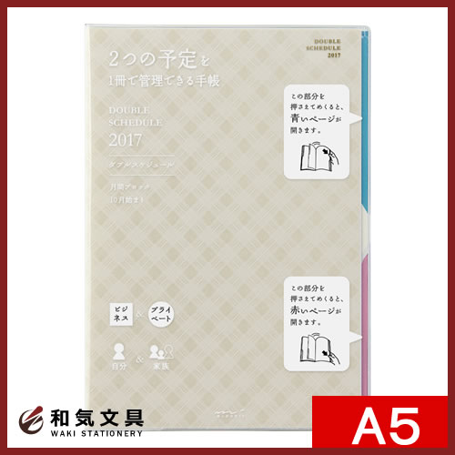 見開きで一か月の予定が見れる。プライベートな内容は色別のページに書き込めて良い。 【クロネコDM便対応】ミドリ(midori) 2017 ダイアリー 「DOUBLE SCHEDULE(ダブルスケジュール)」 プロジェクト/予定 A5 27540006/27541006【10P01Oct16】