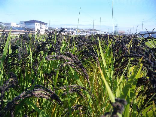 こんにちは。年賀状を作り始めた畳屋の姉さんです。 毎年、自宅用の年賀状は家族写真を、会社用の年賀状は畳の写真を取り入れています。まず会社用の年賀状から作り始めました。 心配なのは自宅用です。最近家族揃って写真を撮ったことがないような気がします。特に長男と娘(中学生二人)は写真に写りたがりません。今年はバラバラの写真を載せるしかないかな・・・。 そんなこんなで写真の整理をしていたら、2ヶ月前に社長が撮影した黒米の写真が出てきました。 みなさん、黒米ってご存知ですか?召し上がったことはありますか? 私は食べたことはありますが、田んぼで黒米が実っているところは見たことがありませんでした。社長も珍しいと思って、畳を収めに行った途中で写真を撮ってきたのですね。 稲穂がこういう色だということは、籾も黒紫なんですね。 そういえば、2,3年前に静岡の畳組合青年部が黒米の栽培のお手伝いをしたことがありました。黒米や赤米などの「古代米」は、葉っぱ(藁になるところ)が普通のお米よりも長いので、高品質の藁床の材料になるそうです。 その時青年部が刈り取った稲は、ちゃんと畳の藁床にして畳製品に仕上げ、どこかに寄付したということです。お米も炊いて食べたそうです。 黒米の実の部分、特に果皮にはビタミンB、リン、カルシウムなどのミネラルが多く含まれており、視力増強や肝機能の強化作用があるそうです。 しかも、コシヒカリの半分程度の肥料で育ち、病害虫にも強いとか。 なかなかの優れものですね。