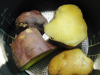 簡単あま~いさつま芋(炊飯器):レオン亭秋から頻繁につくっています。手抜きをしたいときの、Taro の昼ごはんです。さつまいも、牛乳(豆乳)、果物、以上。・・・これじゃ、おやつですねでも、手抜きしたいときって、ありますよねー(できれば毎日手抜きしたい)このメニューのとき、母はインスタントラーメン食べてます。一緒にじゃがいもを入れて炊くと、夕食のポテトサラダが出来て、一石二鳥