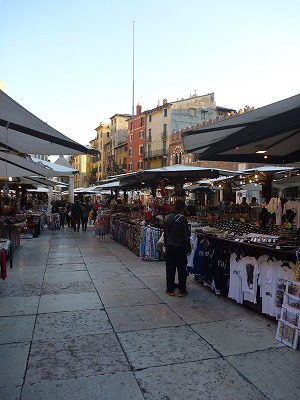 イタリアでは至る所にパフォーマーがいました。彫刻のような恰好をした白塗りの人がじっとしていて、お金を渡すと急に動き出したりとなかなか面白いです。ちょっと太り気味のマイケルとチャーリーのパフォーマンスがありました。チャップリンを気取っていたパフォーマーは写真を撮ろうとするきーちゃんを追いかけてきて、きーちゃんはびっくり。キャーと言って逃げていました。ベローナでは出店が出ていました。お店は地元の人に交じって中国系やアラブ系など様々。とても賑やかです。右手は日本の観光客、左手は地元の女性。さすがに颯爽としています。トイレには便座が二つ並んでします。日本のようにウォシュレットがないのでひとつはお尻洗いに使うそうです。