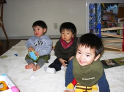 今日は長ら~く欠席しているサークルのママ友が遊びに来てくれました♪めちゃめちゃ久しぶり☆1人は7月うまれのKくん。もう1人は10月生まれのTくん親子だ!ちなみにめだちゃんは8月生まれだよ。Kくんと会うのは本当に久しぶり♪めだちゃんよりちょうど1ヵ月半早く生まれてるので絶対にめだちゃんに輪をかけてやんちゃになってると決めつけていたの。(↑ ごめんね!m(。≧Д≦。)mスマーン!!)ところがどっこい、めちゃめちゃおりこうさんでびっくり!!( ̄Д ̄;)なぬぅっ!!めだちゃんがおもちゃを横から奪っても我慢してこらえてるし頭をテーブルの角にぶつけても泣かずにがんばってるし。どうして?どうしてなんだ?この違いは何??┐(゚⊇゚)┌...why?めだちゃんはと言えば、緊張してたのはみんなが来た時の一瞬だけでやれおもちゃ返せだの…そのおもちゃは使うなだの…あのこがどうしただの…やいのやいの文句ばっかりプリプリ言ってた。ヾ(。`Д´。)ノ彡☆ブーブーッ!!Tくんはいつもながらマイペースで集中してコースターで車を走らせたりニコニコ笑顔で黙々と遊んでた。これまたおりこうさん!みんな、めだちゃんと同じようにギャ~ギャ~言ってやんちゃだと思っていたのに、どうしてこんなにもおりこうさんなんだ??めだちゃんって一体??先が思いやられるわぁ。。。もっとしゃべりだすようになったら文句ばっかり言ってるんだろなぁ。。。(/_<) 誰に似た?ひょとっして私? …(TT▽TT)ダァー今日はいろんなお話で盛り上がりすごく楽しく過ごしたよ♪そうそう!み~んなおちんちんむけてましたぁ!d=(´▽`)=b ィェーィ♪ みんなが帰ったあと、事件が起きました!!夕食を作り、さぁ食べようと炊飯器を引き出しから引き出すとふたが開いてたの。「あれ?」と思い、中をのぞくとごはんが乾燥してカチカチに固まってました!(ノДT)アゥゥいつからふた開いてたの???これも、めだちゃんの仕業です。。。今日の夕食、ごはん無しです。。。↑ ↑ ↑ 皆さんポチッとよろしくお願いしま~す♪\(@^▽^@)/ めだちゃん☆と愉快な仲間達♪のショッピング