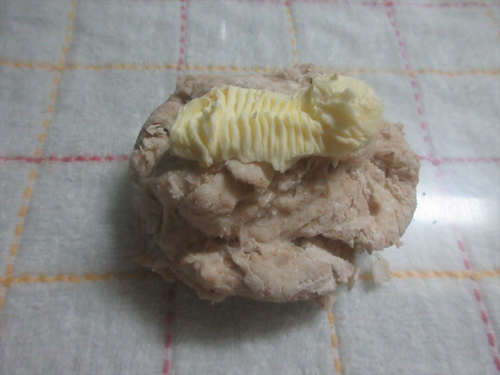 台に移し・・・バター風を加え・・・捏ね捏ね6分