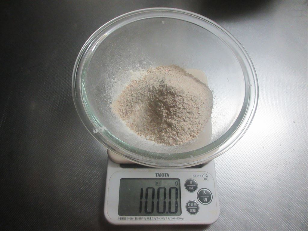 強力粉75g、全粒粉25g、塩、クリーミーパウダー