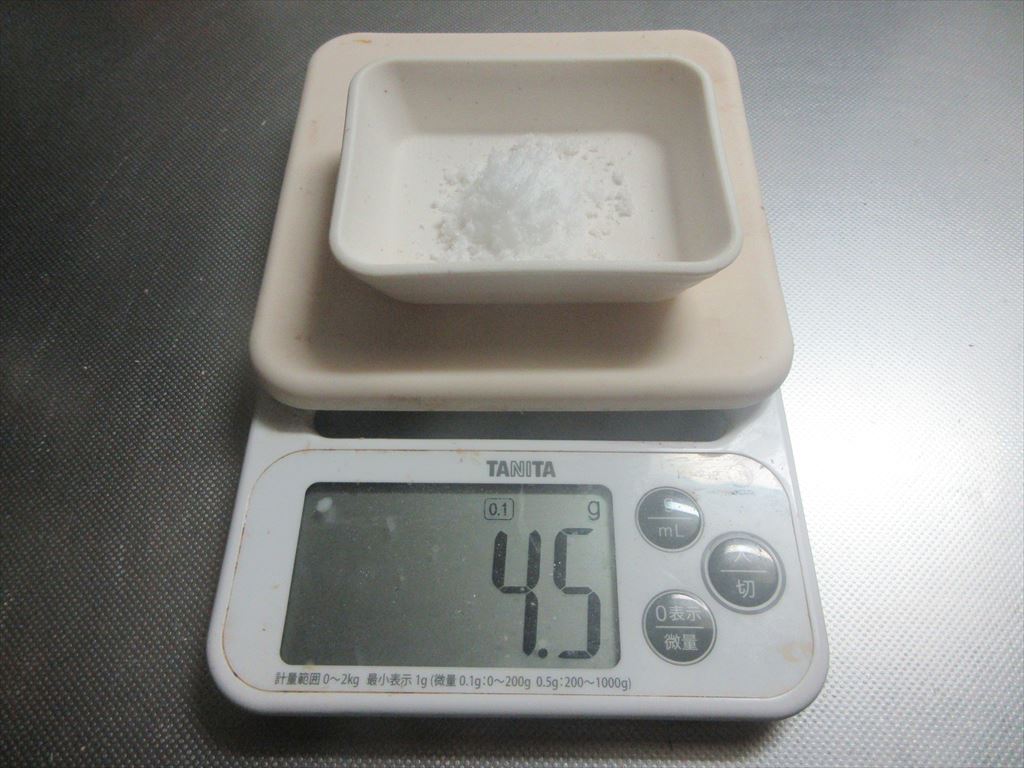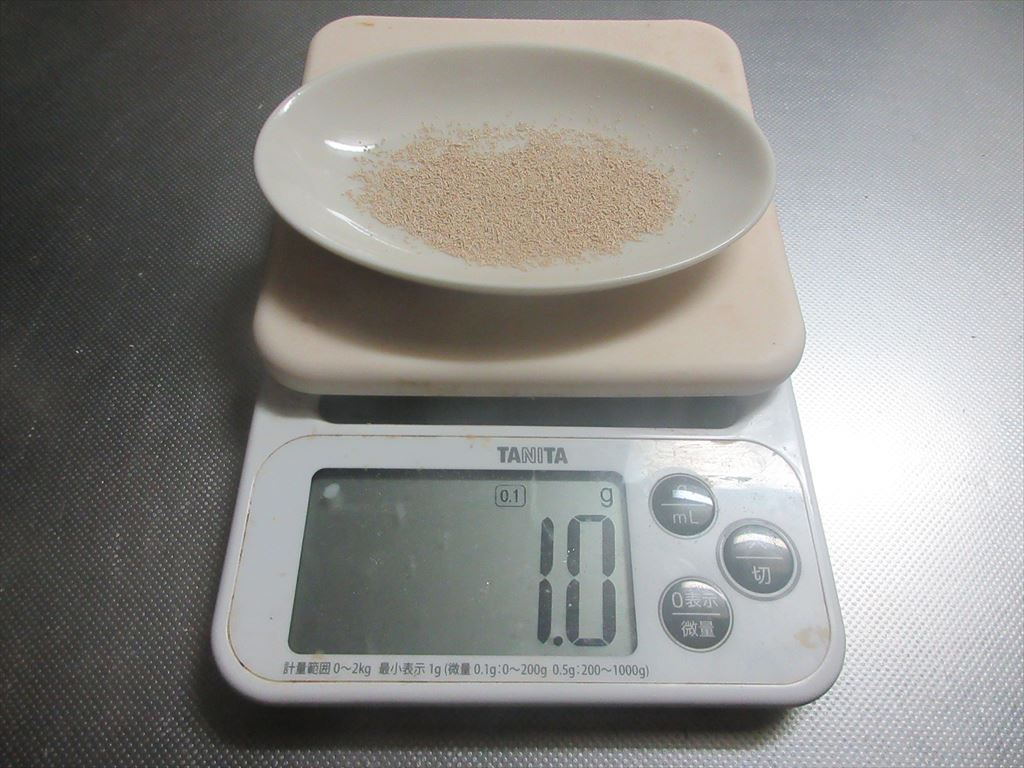 ドライイースト1gと砂糖4.5gを
