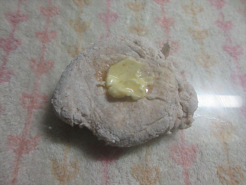 台に移し・・・バター風を加え・・・捏ね捏ね6分