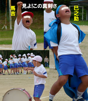 今日もばば馬鹿です。ひまわり家に泊まり孫の小学校の運動会、早朝から弁当作りに大忙しのひまわりさん。パパは早朝から準備で学校へ、そのあと場所取りでした。中央の来賓席のならびのテント内勿論前列でとれました。夜中に目が覚めそのあと眠れず、朝は眠くて遅めに起きたらお兄ちゃん達はもう起きていて準備も完了していました。姫だけまだ眠っていました。巳之助は前歯が骨ごと折れて3ヶ月運動できないということで今年の運動会は残念だな・・と思っていたら先生との話し合いで、危険度が低い種目は出場させようということになったのだそうです。だから朝張り切って早く登校して行きました。全校生徒も数が少ないので馬吉も巳之助も役割があるのです。(大きい学校は6年生だけでしょう?)運動会の朝!嬉しい日なんですね。そうそう、巳之助がなぜ前歯が折れたかと言う話はまだ書いてなかった。授業中、立ってみんなでじゃんけんして、しゃがむ時、椅子に上から顔をぶつけてしまった。ということです。騎馬戦や、障害走(平均台や跳び箱の時危険が伴うもの)を止めてよさこいや応援合戦は出場可能。リレーもOK。出場できない種目は巳之助が太鼓の合図係やカードを拾う場所でカードを並べる役、マスゲームではピラミッドを立てる傍で中央で応援団長みたいに応援する役とか上手く考えてもらっていました。担任の先生がひまわりさんに「お母さん!巳之助君を見て!」と指さし巳之助が必死で応援歌を歌っている写真にあるあのシーンです。(のけぞりぶりが一人目立ちました)応援合戦の歌は巳之助も馬吉も それはそれは全エネルギーを傾け必死で応援している様を見て運動会では今年初めてばぁばは感動でジーンとしてきました。馬吉はよさこい踊りは得意で正確な動きをします。(黄色の衣装が馬吉、空色がお兄ちゃんの巳之助) この小学校の児童は保育園の時から見ていた子たちです。6年生の子もまだ小さかった時を知っています。「大きくなったね~!」とか「今日は早かったね!」と他所の子にも声掛けします。姫は<来年度入学児童>で登場時不安そうな顔で仲良しの子と一緒にそろそろ・・と登場。この二人、保育園でもダンスでも固まってた特別シャイ。そのあと姫はグランドの片隅で保育園仲間の男の子とマイペースで仲良く遊んでいました。来年は小学校に3人行くことになります。写真撮るのに、今年は二人で近くだけど、散らばってたら親はグランドの周囲を走り回らねばならないでしょう。ここの父母は保育園時代からの顔見知り!、みんなが寄ってたかって、お弁当を分け合い良い人たちばかりです。お仲間に料理屋さんがいらっしゃて、お料理は毎年美味しいのであてにしているのです。終わったら夜、子供連れで ある御宅に集合し打ち上げです。ばぁばは運動会が終わってから送ってもらい帰ってきました。巳之助には車の中で「良くがんばったね、ばーちゃん涙が出た!」と話しました。・・・・・・・・・・・夜中すごい雨でした。今朝もまだ雨が残っていますが予報ではこのあと晴れそうなので洗濯しています。今朝5時半に目が覚め、画像をブログ用に準備。やっとアップです。★被災者が選んだ震災グッズをまとめています・・・・・・・お薦め雑貨&インテリアグッズ