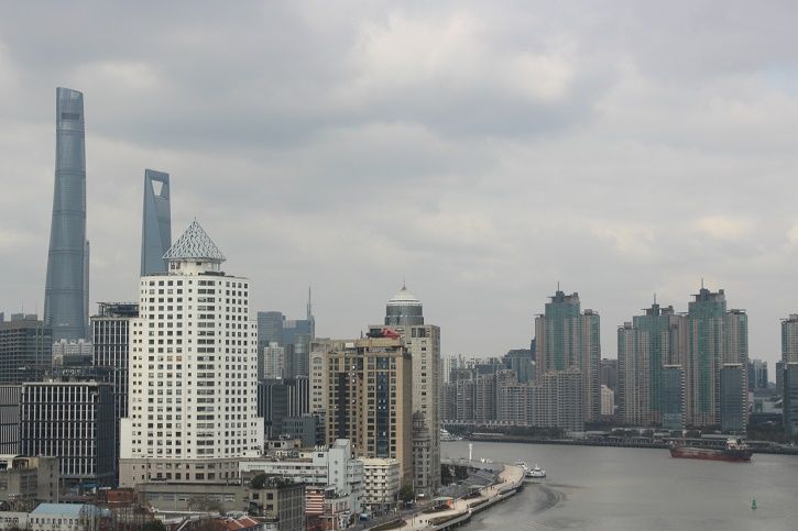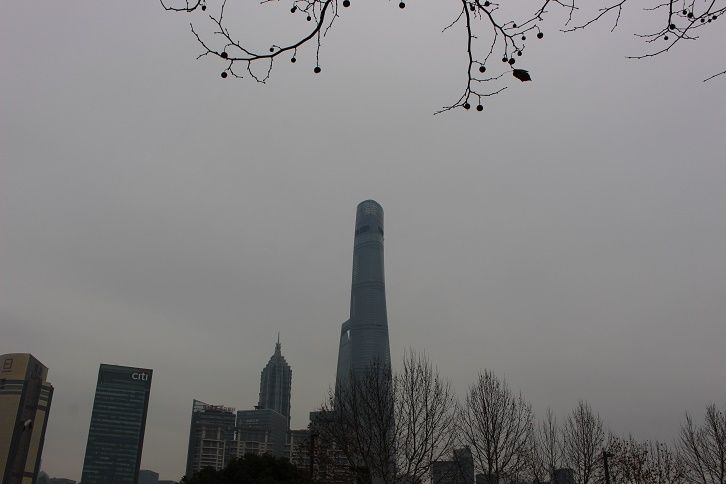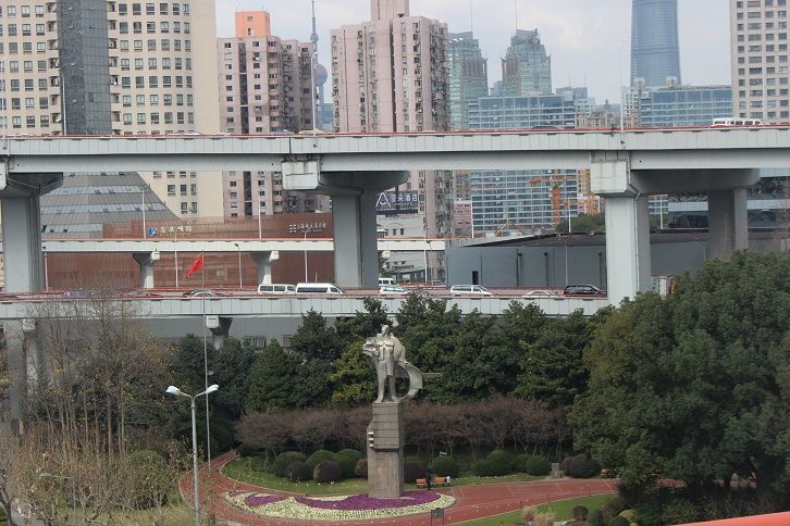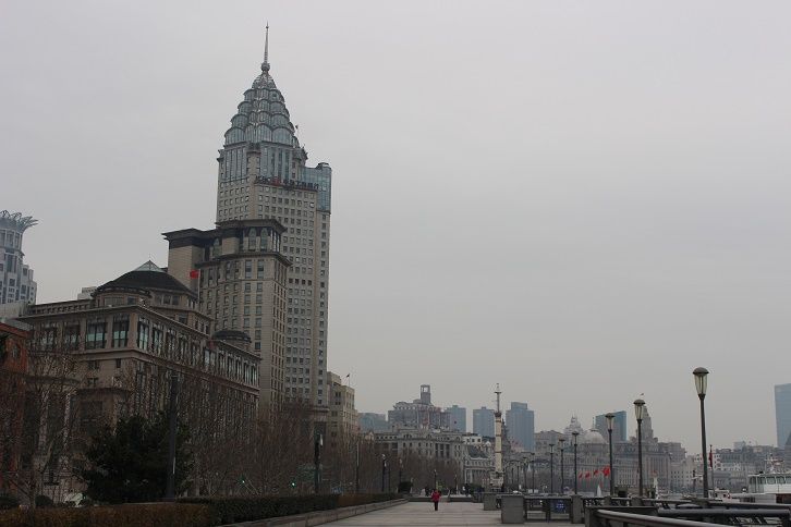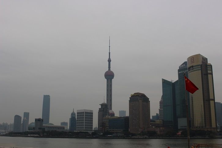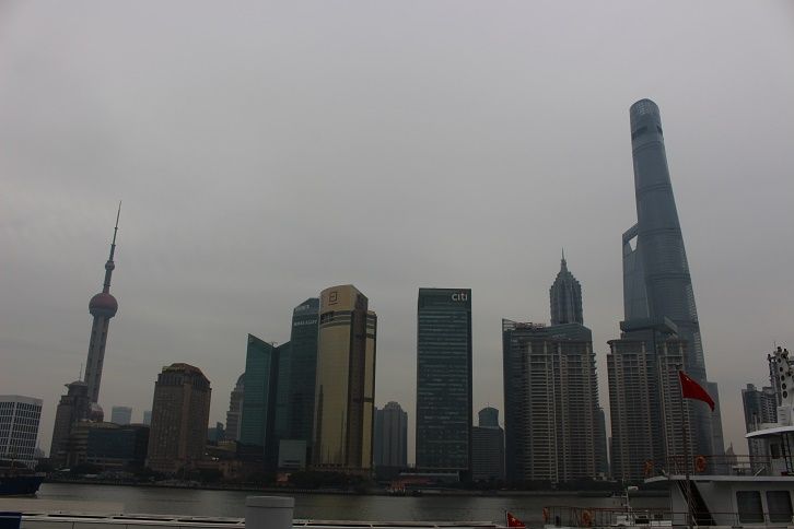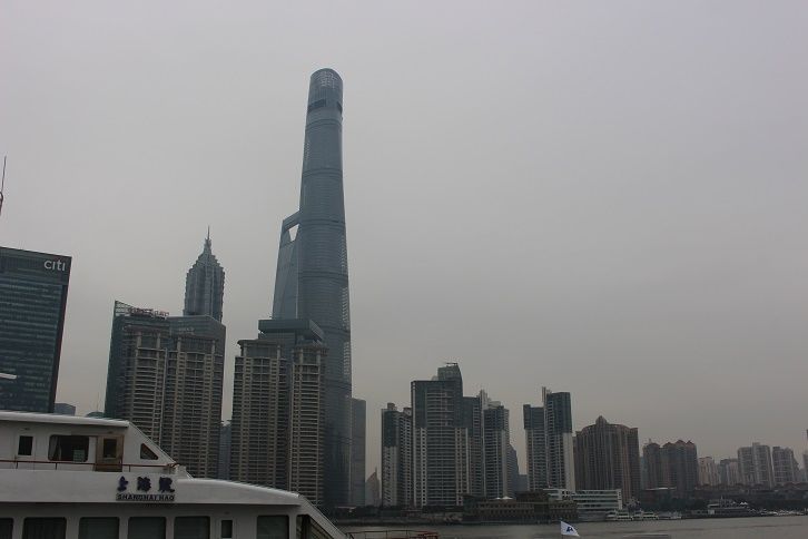 高層ビルの建ち並ぶ浦東地区とは黄浦江を