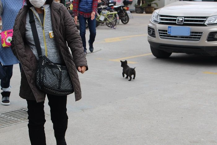 駐車場を小さな子犬がトコトコ・・・旅行を