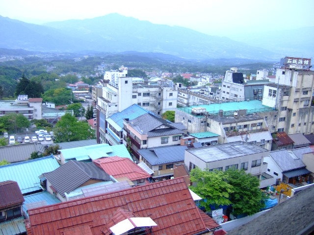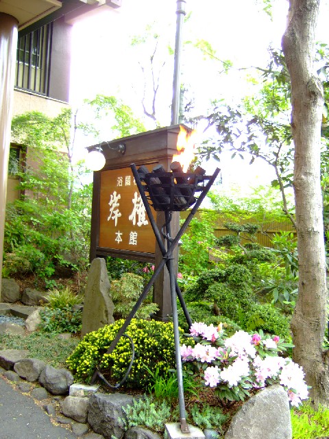 お部屋からの風景。7階は伊達じゃありません。ここの旅館には温泉が3箇所(貸切を含めるともっとあるけど)あって、まずは外にある半露天風呂へ。旅館着を来て旅館を出てとことこ向かいへ歩き、古びた木造小屋に入ると男女別の温泉があります。ここにも仲居さんが案内人としておりました。行き届いた旅館だなぁ。小さな木のお風呂でしたが、私が入った時は1人きりだったので貸しきり状態!お湯は泥を混ぜたような濁り湯で、匂いも少しあったかな?でもお肌つるつるになる、湯加減も最適でゆったり気分で外の良い景色を眺められる良いお湯でした。古びた感じがなお良い!ここ、温泉ごとにタオルが山のようにあって自由に使えるんですよ。お湯にタオルを入れたら湯の色に染まっちゃうのでこういうシステムなのかな?体も火照って出ると、飲み放題の冷え冷え麦茶まである!素敵~!!父は戻ってから一休み。私は体を洗える別の内風呂へ行きました。ちょっと距離があるのが難だな。でかい旅館だからね。内風呂はかなり広いです。湯船はタイル張り。腰掛けられるとこもあってゆったり入れます。やはり同じ色のお湯。こっちはぬめぬめしてないや。私の他に入ってるのはみーんなおばあちゃん。そういや今日泊まる客の名前に『○○老人会』って沢山あったような。。。。外に出ると仲居さんが2人麦茶の案内をしてて、飲もうとしたら「お姉さん!反対よ!」ああ!私旅館の浴衣裏返して着てるよ!!恥ずかしい!!「戻って着なおしてらっしゃいな」言われるままに着なおしてくると、「お姉さん!今度は袷が反対だわ」げ!これじゃ死に装束と一緒じゃん!!まさに踏んだり蹴ったりですね。大変恥ずかしかったです。覚えておきましょう。「右手がすっと胸に入る方が正しい袷です」旅館にはイワツバメがすごい数の巣を作ってまして、窓を見ると大量に飛び回ってます。最初蝙蝠かと思ったよ。帰ってからついウトウトしてたら部屋でお食事です。仲居さんがてきぱきと持ってきてくれました。うわおーー!!温泉入って料理も運んできてくれてお布団敷いてくれて、何にもしなくていいのが旅館の醍醐味です!氷のかまくらに入ったお刺身は冷えててうまい!串焼きはお野菜、お魚、そして厚切りお肉です!自分で網で焼きます。焼きたてうまし!甘い串団子も焼いて食べました。これに水沢うどん、炊き込みご飯にお味噌汁。食べきれないほど美味しくってたまりませーん!!私は水沢うどんでギブ。父と3合ほどお酒を飲みました。足りないよ!(最高は2人で5合です。大した事無いか)ご飯も食べておなかもくちた後はくつろぎタイム。夜の伊香保の石段街が見えます。旅館の玄関です。なんとなく写してみた。「1万ドルの夜景だね」と父。あの光一つ一つに今日の1日があるんだなぁ。ゆったりしたところでもう1つの露天風呂に行きました。ここがるるぶに載ってた露天風呂みたいです。別館の四階にあるのですごく遠かったです。ここの内風呂は寝湯になれるみたいで、枕代わりの木が並んでました。お湯はやはりにごり湯。さらさらかな?一面全部窓なんですが、見えないよう曇りガラスになってました。外風呂が露天風呂。開放感が良い気持ちですね。今は真っ暗だけど、晴れたら谷川岳が見えるんだそうな。人も少なくゆっくり浸かりました。帰ったらお布団が敷いてありました。布団へジャンプ!!父と話したりTV見たりして夜をすごし、9時ごろには就寝。。。。が。あっついんですよ、なんか。お風呂のほてりなのか、布団蹴飛ばして2時ごろ目が覚めちゃって。そしたら父も「暑いんだよなぁ」と起きてきて、暗い中用意されてた冷や水飲んだりしてしばらくしてまた布団へ。やはり暑い。。。。