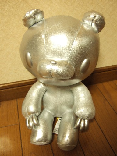 そんなんでEさんと新宿寄ってった時に「覗いていい?」とムリヤリ連行したいつものゲーセンで捕獲した「チャックスGP 祝グルーミー2周年」の金銀グルーミーです。ここのゲーセンはグルーミーを大変豊富に取り揃えてるのでお気に入り。てかアルタ帰りの道でゲーセンここだけになっちゃったしね。200円だったので1回様子見たら動いたので2回目でGET。Eさんから「すごい!2回で取っちゃうなんて!」いやいやこの道十数年。。。。この技を取得するのにいくら費やしたかってもう考えたくないね。銀だけ取りました。金はまぶしすぎ。あと「腕グルーミー普通サイズ」も2回でGET。赤しかなかったような。。。。。数日後腕グルーミーはバックにつけてたら無くなっちゃいましてちょっと涙目。。。
