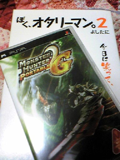 えー。モンスターハンターは初代のもドスもポータブルもなんも持ってないのですが、いきなりここから入ってやってけるものなのか分らないのですが。『モンスターハンター2G』(PSP)を購入しました。正確に言うと買ってもらったんです。いきさつがありまして。このたびもよこちゃんの家に初PSPが来たんですね。タダで。旧型なのですが、持ってた友人が新型を買ったので、お古のを貰ったそうなんです。で、その友人がモンスターハンター2Gをやってまして、もよこの彼氏のS中さんもモンスターハンターはPSP以外で発売のものには相当のめりこんでいまして。で、買ったそうなんですよ、ソフトを。そしたら数日たってS中さんが仕事から帰る途中新型PSPとソフトをいきなり買ってきまして。もよこんちで通信でモンハン日和になったそうです。PSPが複数あると、ネットにつなげなくてもその場にいれば一緒に狩りに行けるそうなんです。で、初代モンハンを触らせてもらった経験はあるのですが、もよこんちに遊びに行ったときにキャラクターを作らせて貰いまして、「むむちゃん、モンハン買ってあげるから次に来た時にPSP持っておいでよ。データ移して遊べるよ。せっかくキャラ作ったんだし」ここで買ってくれるというのは、もよこにこの度めでたい事が起きまして、お祝いを送る約束をしてたんですが、お祝い返しは何がいい?というとこで悩んでたらこの話が来たんです。そう、これはお祝い返しに買ってもらったんです。お祝い返しに!いいのかこっからやっても・・という疑問が残るんですが、興味はあったのでこれからはレッツ狩り三昧の日々です。とりあえずキャラメイキングをしたんですが、なんかいい感じにイケメンが出来てしまったので、もよこんちで作ったキャラは破棄してもらいました。長くやるならイケメンでやるよ!名前は赤毛の『kasim』(カシム)君です。*のちのちやってて分かったんですが、ほとんどヘルメットかぶるから顔見えないんですね!イケメン関係ないや!ハハッ!orz