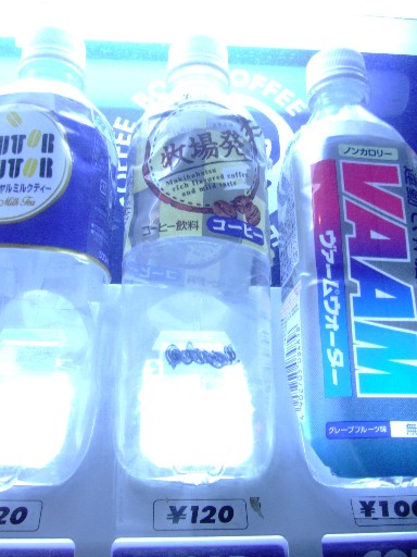 で、ここでは毎回変な磁場が働いてるらしく、この時真夜中の4時くらいでしたがもちろん去年同様タバコが自販機で買えまして、飲み物も変わってます。わわわ!!!去年結局姿を消した『牧場発コーヒー』のペットボトルが復活してるよ!!買いだめしなきゃとお金を入れたら売れ切れでした。。。涙がにじんでしまいました。仕方なくあったかいものでも。。。と、もよこがこれを発見。あったかいトマトスープねぇ。。ここの自販機はペットボトルでも120円で買えますが、今回は70円が登場。安いし買ってみようとまずもよこがお金を70円入れて購入。ちゃりんという音とともにおつりが登場。「。。。私今いくら入れたっけ・・・???」おかしいと私が今度100円入れると、50円のおつりが帰ってきました。「もよこちゃん!これ50円だよ!!」「ちょっとお店のだんなさーん!!金額間違えてますよーーーー!!!」座って飲んでみて、2人で黙りました。「・・・・私これ帰って味付けして飲むから・・・残りちょうだい。。」50円でももういらんわ。他の70円は一体いくらなんでしょうか?道路沿いの小さな空き地で毎回おしゃべりするのですが、ここに座ると目の錯覚で前から走ってきた車がこっちへ突っ込んでくるような恐怖感を味わえます。ちょっとしたスリラー。