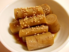 ごぼうの甘辛煮料理名:ごぼう煮物作者:ドキンちゃん0298■材料(2~4人分)ごぼう / 1本水 / 400cc★砂糖 / 大さじ2★みりん / 大さじ2★麺つゆ(3倍濃縮タイプ) / 大さじ4★ピリッとさせたい場合、豆板醤、ラー油 / お好み量炒りゴマ or すりゴマ / 適量■レシピを考えた人のコメント全工程写真あり。ぶつ切りにして、少しかために煮て、歯ごたえを良くして、噛む回数を増やそうと・・・満腹感を作れば食べ過ぎの防止になるかな~と大きめに切っているの。詳細を楽天レシピで見る━━━━━━━━━━━━━━━━━━…↓↓ ポイントが貯まるレシピ サイト ↓↓>>最短約 30 秒!▼無料▼会員登録<<━━━━━━━━━━━━━━━━━━…おいしそう!!どきんちゃんのレシピはわかりやすくて大好きです。ごぼうブームの中作りたいと思います。