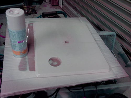さて洗車が終わったんで 塗装状態を確認。完全に硬化してましたので ヤスリを掛けます。その上からベージュを塗装。あ~~~~~やはりサフを買ってきたほうが良かったか~~~コンパネは 表面は問題ないんですけど切断面は接着剤部分が 塗料をはじく傾向があります。もうめんどくさい!厚塗りでカバーします(^^;)夜中まで4回塗り重ね 最後にクリアを吹きました。にほんブログ村 家族ブログにほんブログ村 家庭・家族にほんブログ村 ハンドメイドブログにほんブログ村 木工にほんブログ村 車 修理・整備にほんブログ村 自作PCにほんブログ村