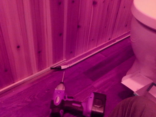 なんか補修ばかりですが(^^;)トイレの暖房のセラミックファンヒーターの電源配線なんですがダイソーの 配線隠しを使ってます。が両面テープがつかない(>_
