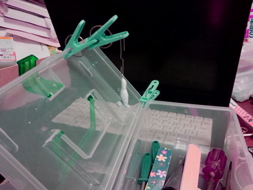 さて帰ってきたら 早速製作です(^o^)娘は紙粘土で顔を作ってるようです。こちらはエポキシが乾燥してるんで表面を軽く研磨して塗装です。シルバーを全体に吹いて 最後はホワイトを塗りました。目の部分は 削り込んだんですけど 必要なかったかな?まいいでしょ。今回 ナイスな道具を活用してます。紙やすりの代わりに 爪やすり。ダイソーで荒目から仕上げまでついてます。程好い硬さで 曲線も直線もこれでいけます(^o^)そして 電動爪やすり。爪を切らずに削る人用なんですがこれがいい感じ。リューターほど削れないけど 少しずつ削っていくには最適です。今回は試しに目のところを彫りましたが数秒です(^o^)そして塗料の乾燥中に フックに加工。フライ風にトリプルフックを加工しました。昔 トップウオーターのフックをこんな感じのフックに交換してました。(スレたバスにフライを使って爆釣だった頃トッププラグのフックを交換したら釣れてた)なんかいいんだろうと思ってやってみました(^^;)まあ なんとなく 魚のひれが動いてるように見えるのかな?とりあえずよし。そして・・・・・完成です~~~~~~周りにある ダイソーのジグヘッドと比べても小ささがわかってもらえるかな?もう少し小型化できそうですが 今回はこれで。できればエアブラシで綺麗に塗装したいな~~まあ割り箸ルアーが軌道にのったら考えます。娘も見て 「すげ~~~」と(^o^)これで あるもので作った0円ルアー完成です!にほんブログ村 家族ブログにほんブログ村 家庭・家族にほんブログ村 ハンドメイドブログにほんブログ村 木工にほんブログ村 車 修理・整備にほんブログ村 自作PCにほんブログ村