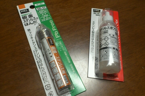 最近 自作熱が止まらない釣具です(^^;)今日もこんなもんを買ってきました。ステンレス溶接用ハンダとフラックスです。もちろん オリジナルカゴを作るためですがはたして溶接できるのかが心配です。鉛は普通のハンダで溶接できるんですがステンはつかなかったんで買ってきました。これで ダイソーのカゴに天秤をつけれたらかなり安く上がるんですけどね~~~~~せっかくなんで カゴのリングも綺麗に仕上げたいし。上手く行けばいいんですけど・・・にほんブログ村 家族ブログにほんブログ村 家庭・家族にほんブログ村 ハンドメイドブログにほんブログ村 木工にほんブログ村 車 修理・整備にほんブログ村 自作PCにほんブログ村