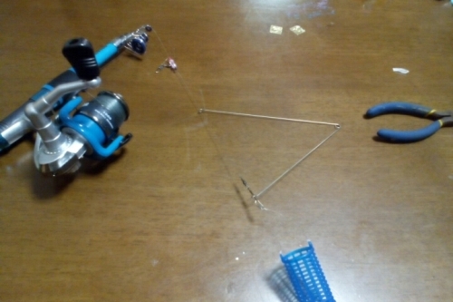 前回 子供の竿の管理で なかなか釣りにならなかったんで今回は 簡単に管理できるようにカゴ天秤にしようと思いました。しかし片付けがしにくいと困ります。カゴから天秤が出ているとかさばるんで・・・・でひらめいた!こんなのを作りました。仕組みはバネ線で作ってあり 道糸を通してカゴと連結するところは一緒に連結。魚がかかるとこんな感じ。バネが縮んで違和感なく食わせられる?はず。これだと収納も簡単だし 投げカゴで浅いところを釣る場合 使いやすい!これで 子供の仕掛けは完成だ!にほんブログ村 家族ブログにほんブログ村 家庭・家族にほんブログ村 ハンドメイドブログにほんブログ村 木工にほんブログ村 車 修理・整備にほんブログ村 自作PCにほんブログ村