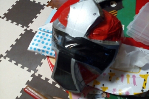 さてテレビを見ながら 娘は紙芝居を作り始めたんで私は息子のクリスマスプレゼントを作ります。仕事の帰りに 追加の布テープは買ってきたんでまずは 赤忍者のマスクを仕上げて・・・・完成~~~~意外といい出来だ!これが500円とは・・・さてもう一個作るんですが 採寸するにも息子がいないので作れない。そこでセットで渡す予定の 忍者一番刀を作ることにします。事前にダイソーで忍者刀を買ってきてたんでこれをベースにすれば簡単です~~~~とりあえずつばを外します。刀の刃の部分は銀色の布テープで。でつばのあったところに 6角形のダンボール2個で挟み黒の布テープで固定と色付け。その真ん中にネオジウム磁石を埋めます。ここでネットを検索。一番刀のデザインを確認し 製作中の刀に合うシールを作成。貼ります。ついでに忍手裏剣も原寸大で印刷。裏に磁石をつけてカットします。はいあっという間ですが完成!いい出来だ~~~~びっくりだ!勢いに乗って 2個目も作成。更に早くできました。グリップのデザインが違うけど気にならない感じ。なかなかいいものができました。あちゃんと磁石で忍手裏剣も分離できます。回りは悪いけどこんなもんでしょう。完成したのを見て 娘が遊んでます(~_~;)ほしいというなよ~~~~もう作りたくないよ~~~~やっぱ2個作るとあきますよ(~_~;)にほんブログ村 家族ブログにほんブログ村 家庭・家族にほんブログ村 ハンドメイドブログにほんブログ村 木工にほんブログ村 車 修理・整備にほんブログ村 自作PCにほんブログ村