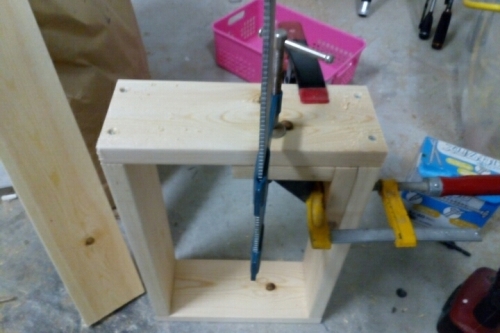 娘から頼まれていた 3段のカートをクリスマスプレゼントにしようと思ってました。もう日がない!体はだるいけど 薬のおかげか?鼻水は止まりました。早速作業開始!今回はSPFで簡単に作る予定だったんでスライド丸のこと インパクトドライバーで簡単木工です。ざっくりと部材を用意して組み立て。ダイソーで買ってきたかごを採寸して それに合う枠を2個準備。それに縦の材をビス止めしたら・・・・もう形になりましたね(^^)あっという間です。適当にやってるのに 縦材が一本も狂わずに取り付けできました。後で考えると これってすごいことなんですよね~~~腕は上がっているようです(~_~;)さてこれにカゴを支える部分を取り付ければ完成です。ビス打ちの面倒さをカバーすべくクランプ総動員で接着。かごを載せるとこんな感じ。いい感じです。ここまできたら あとは夜間に作業して仕上げられるんでここまで。フレームを白。カゴをピンクでいこうと思っています。少しフレームが太いので 白にピンクでレタリングでもしようか?クリスマスに間に合えば・・・・・ですね。にほんブログ村 家族ブログにほんブログ村 家庭・家族にほんブログ村 ハンドメイドブログにほんブログ村 木工にほんブログ村 車 修理・整備にほんブログ村 自作PCにほんブログ村