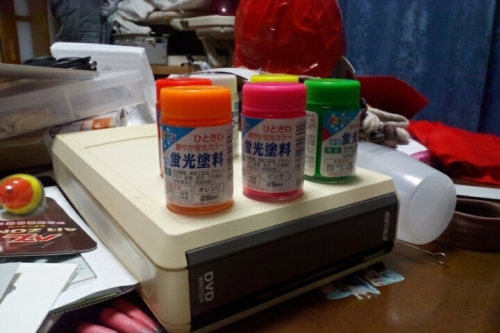 最近浮きを作っていますが・・・記事はありません(~_~;)実は作業中にトラブルが多発し それを乗り越えながら少しづつしか進まないのでまだ乗せていないのです。しかしようやく完成の見通しが出てきたんで 以前から考えていた塗装を少し見直すことにしました。ダイソーに蛍光塗料があるという記事を見かけますが打ちの近くのダイソーにはないのです。1本400円だとなかな手が出なかった・・・しかしボーナスだし行こう!近所のナフコにあるだけ買ってきました。今後はこれで塗装していきます。まあ雰囲気作りでしょうけどね。最近 白 が一番見やすいと感じているので。ネットだと蓄光タイプもあるみたい・・・・暗闇で色鮮やかに発光する蓄光性塗料アクアグロー(水性夜光ペイント) 各色 20g×3本セット(...価格:2,041円(税込、送料別)まあ作ってみてからですね。にほんブログ村 家族ブログにほんブログ村 家庭・家族にほんブログ村 ハンドメイドブログにほんブログ村 木工にほんブログ村 車 修理・整備にほんブログ村 自作PCにほんブログ村