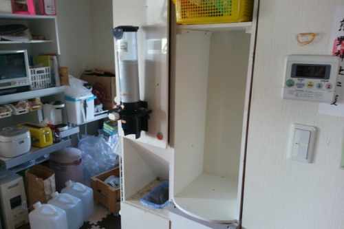 釣りから戻り早速作業開始です。前回 かごを買ってきてから棚の桟を作っていました。完全に塗装が乾いたんで設置です。ウオーターサーバーをよけて空になった棚。ここに 桟を取り付けて・・・・ダイソーのかごを入れたらこれでよし。収納力 大幅アップです\(~o~)/あとは嫁さんにお任せ。簡単木工でした。にほんブログ村 家族ブログにほんブログ村 家庭・家族にほんブログ村 ハンドメイドブログにほんブログ村 木工にほんブログ村 車 修理・整備にほんブログ村 自作PCにほんブログ村