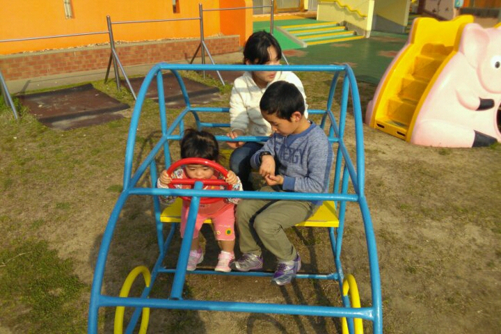 保育園の園庭で走り回る 長女と末娘です(~_~;)