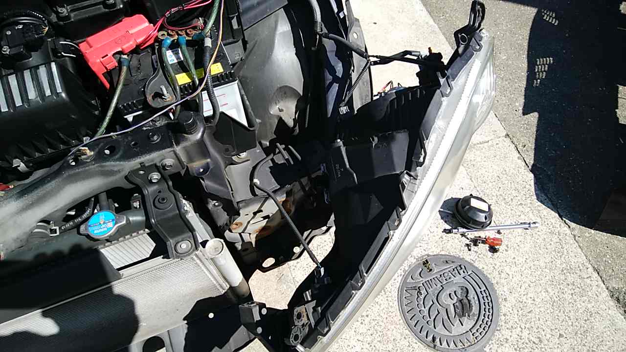 結局 バンパーをはずして ヘッドライトをはずしました。