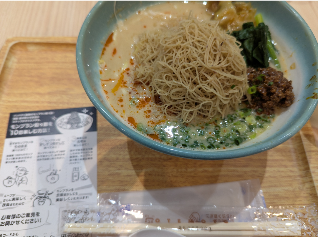 その後は 笠間栗だけ120g(栗7個分)絞った 純モンブラン贅沢タンタン麺🍜 を食べました。はじめて聞いた時は 担々麺+モンブラン=😳?? っと思いましたが、担々麺の上に甘くないモンブランが乗っていて、相性が良くコクがあり美味しかったです。また、食べ方の説明書き通りお酢を入れても美味しかったです。こちらもオススメです。