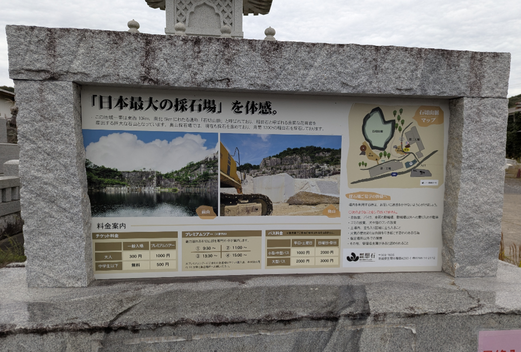 明治32年から100年以上続く「稲田石」の日本最大級の採掘現場だそうです。