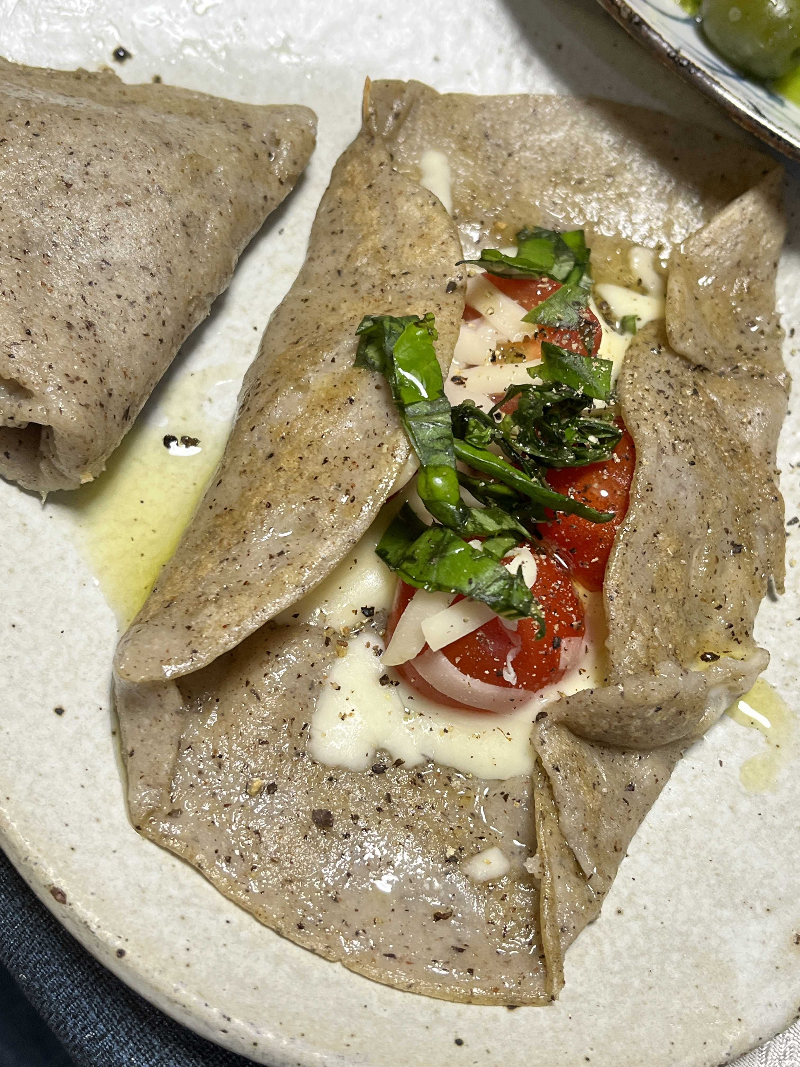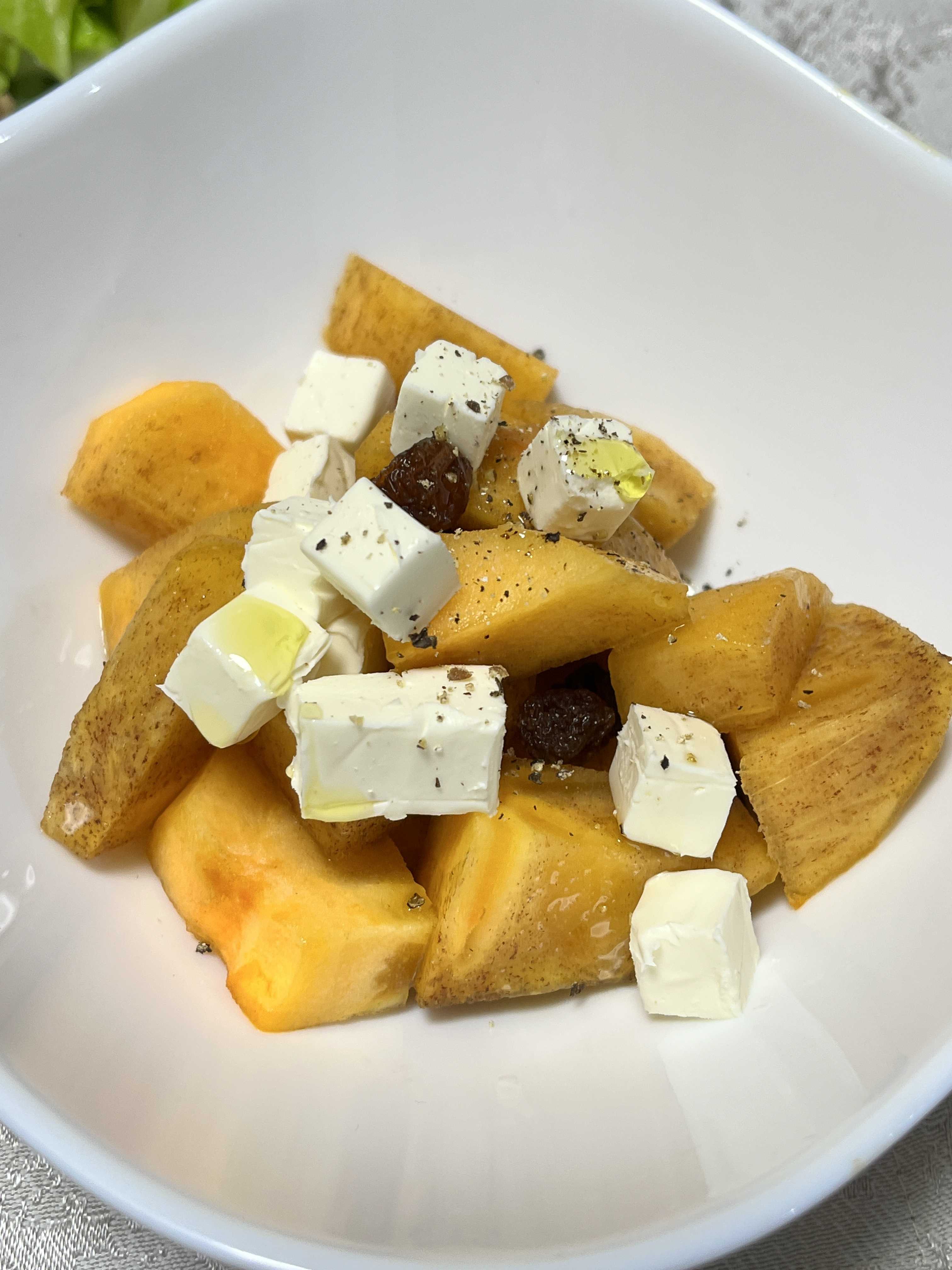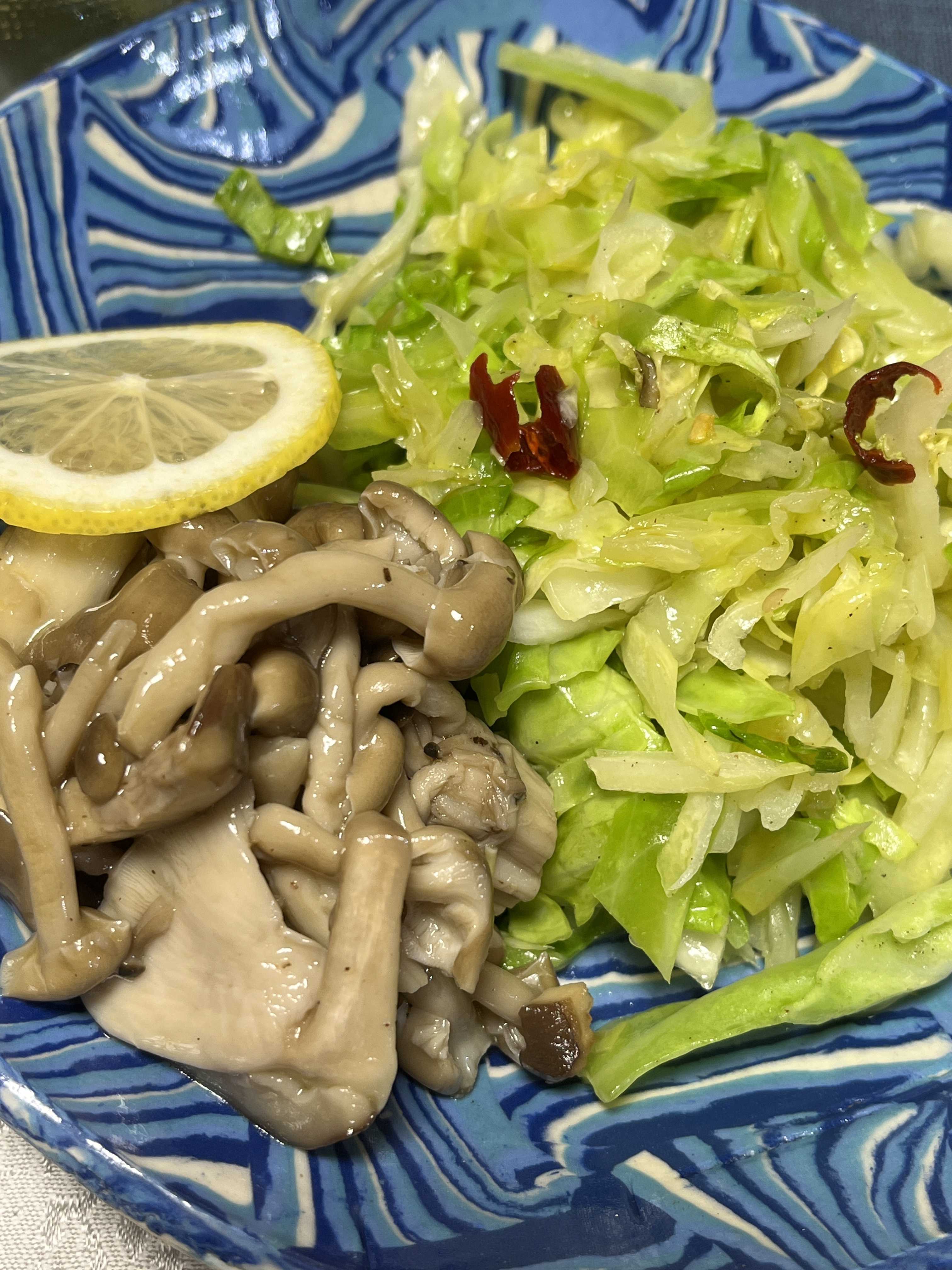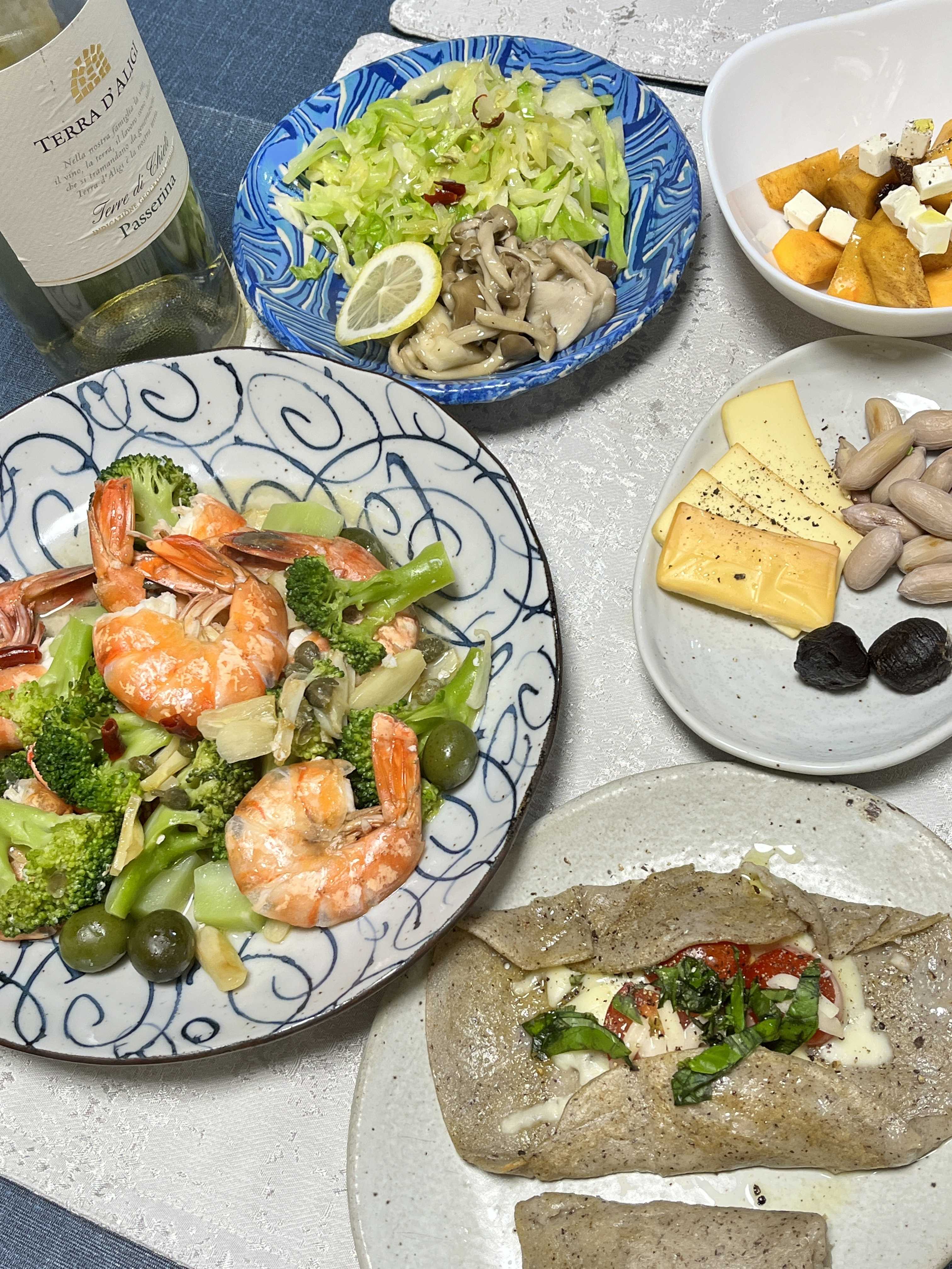 鷹の爪、ケイパー、グリーンオリーブと一緒に炒め、