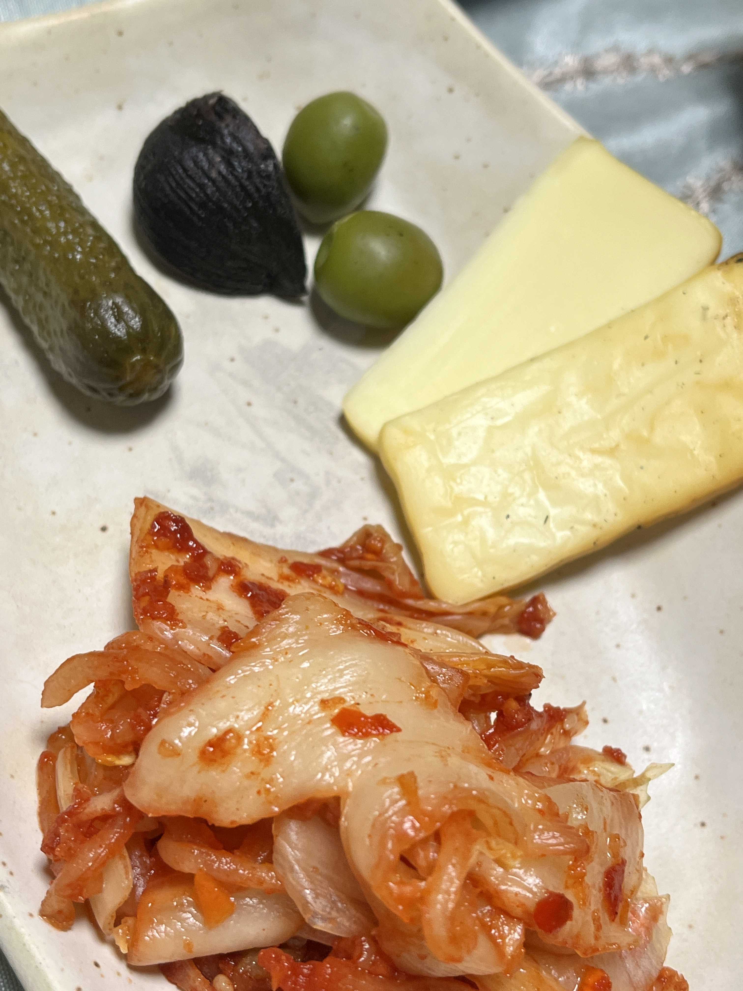 さらに、酸味の効いたピクルスとキムチ、そして青森産の黒にんにく。