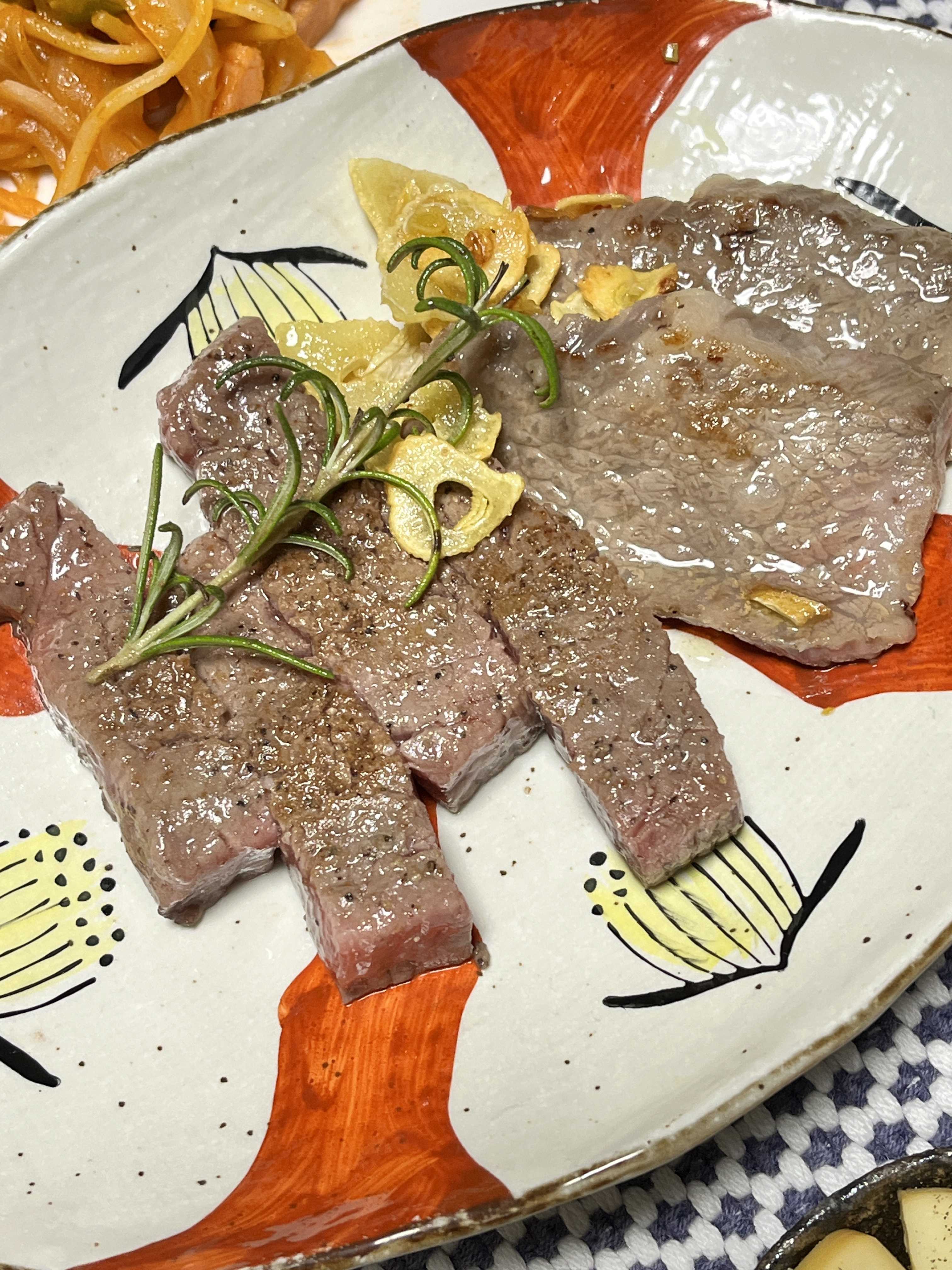 牛肉もものステーキ肉とロース肉を赤ワインに漬け込んでおき表面を強火で焼きつけ早めにあげてホイルに包みます柔らかく焼き上がります♪フリルレタスはご近所さんからいただきました😊とっても柔らかくて美味しい😋久々に作ったナポリタン🍝パルメザンチーズをたっぷりかけておいしい🥰ミネストローネも美味しくできました〜😉親父の晩御飯鳥取産黒毛和牛のモモステーキとロースフリルレタスと生ハムのサラダスパゲッティナポリタンキムチ自家製スモークチーズミックスナッツ燻製青森産黒にんにくミネストローネスープスペイン産赤ワイン お寄りいただけたら幸いですm(__)m今日の晩ごはん#おうちごはん#晩ごはん#晩酌#旬#旬の食材#旬の野菜#おいしい#美味い#ご当地グルメ#ご当地