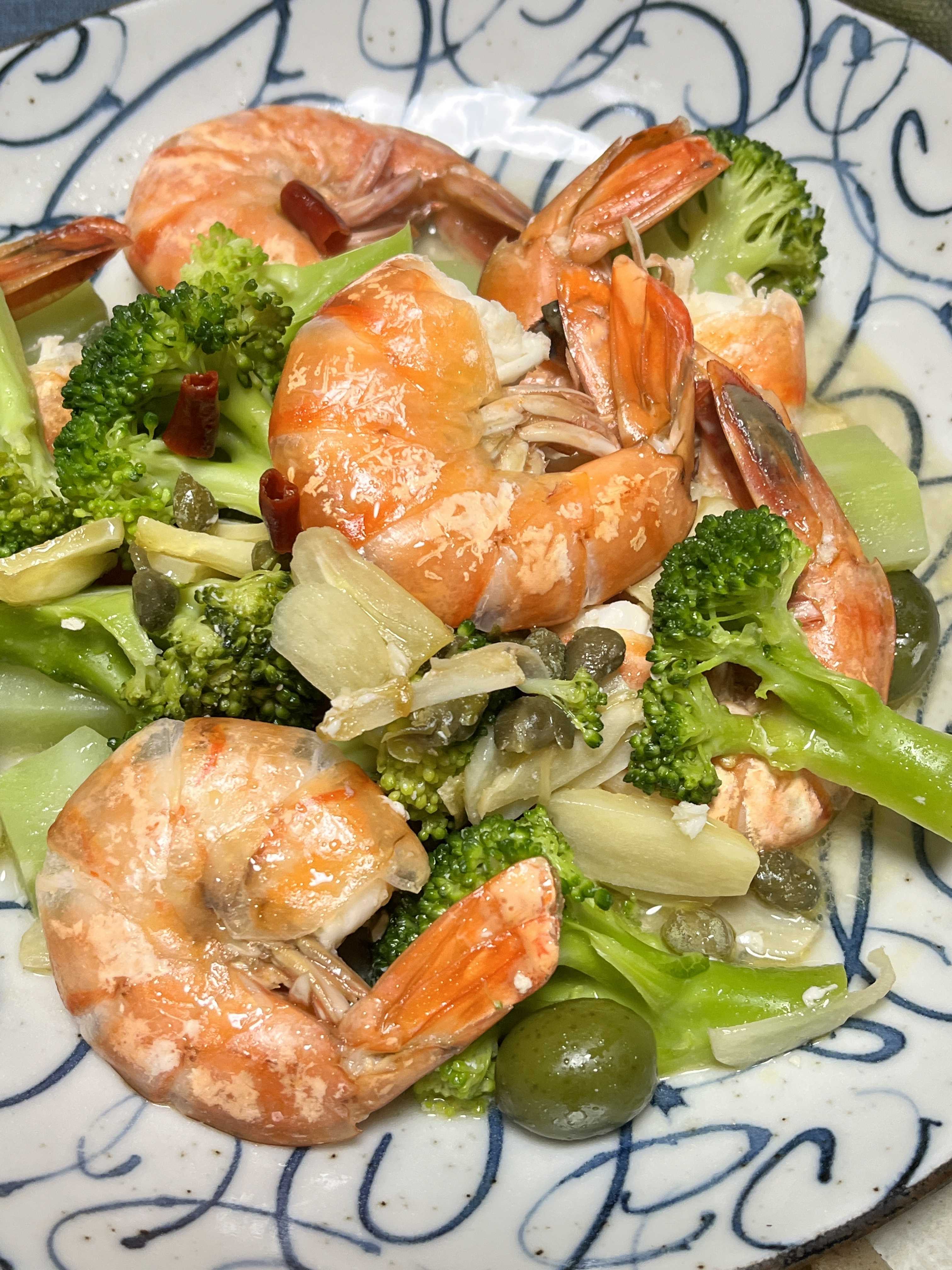大ぶりのブラックタイガーを見つけました🦐すかさずガーリック炒めに🧄お酒と塩と片栗粉で汚れを取り、しっかり水気を拭いて投入😁鷹の爪、ケイパー、グリーンオリーブと一緒に炒め、ブロッコリーも🥦投入マリネはきのこ色々をガーリックで炒め白ワインビネガーとレモンを混ぜて冷蔵庫へ2時間ほどねかせて食卓へガレットは会津産の蕎麦粉をお昼に仕込んでおきましたオリーブオイルで焼きミニトマトとチーズ、バジルを添えて絶品❣️❣️旬の柿も美味しいしどれもこれも美味しすぎてまた飲みすぎてしまいました〜😂😂親父の晩御飯エビとブロッコリーのガーリック炒めキャベツのペペロンチーノきのこのレモンマリネ柿とクリームチーズのサラダそば粉のガレット自家製スモークチーズジャンボ落花生青森産黒にんにくイタリア産白ワインテッラ ダリージ パッセリーナ テッレ リ キエーティ お寄りいただけたら幸いですm(__)m