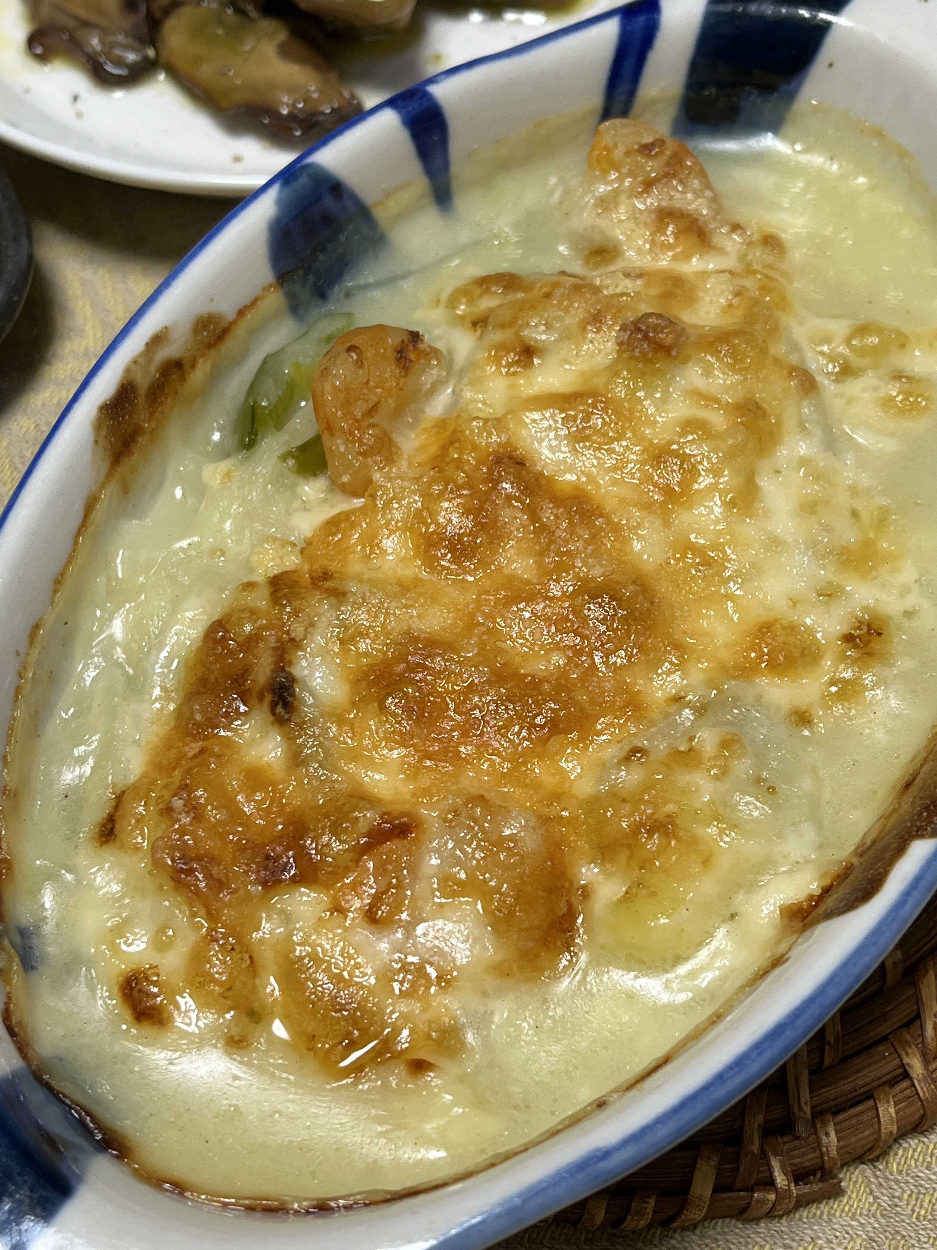 少し涼しくなってきたのでグラタン💕💕ALMONDEなのでエビ🦐と玉ねぎとピーマン🫑だけですがマカロニも入れて美味しくできました😋アンチョビが余っていたので鷹の爪を加えてキャベツとじゃがいもを炒めました辛かった😅けど白ワインにはピッタリ✌️アボカド🥑と蒸し鶏にはワサビマヨオリーブオイルとブラックペッパーもいいアクセントになります🥰牡蠣は缶詰ですが一手間かけてフライパンで温めますこれだけで大違いの味になりますよ😉枝豆はワサビ風味と塩味の2種で銀杏は上手に剥けるコツがわかってきました✌️今日もビール🍺に始まって白ワインでほろ酔い🥰親父の晩御飯エビ🦐グラタンアボカド🥑と蒸し鶏アンチョビキャベツとポテトスモーク牡蠣枝豆2種銀杏青森産黒にんにく お寄りいただけたら幸いですm(__)m