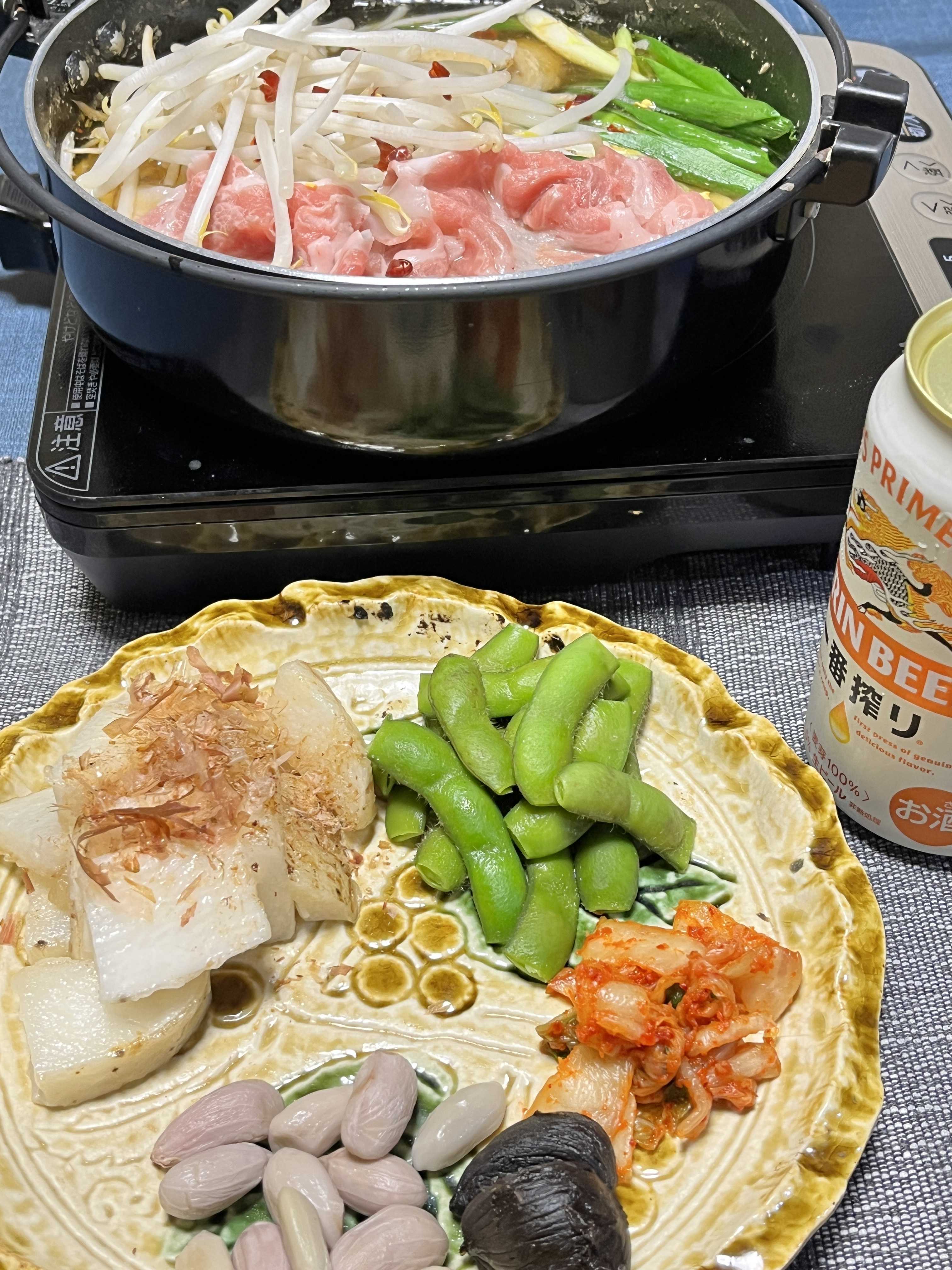 今日の晩ごはんは、「北から南へ、日本の恵みを味わい尽くす旅するおうち晩酌」に設定✈️キッチンから一歩も出ずに、青森、岐阜、小豆島、鹿児島を巡る贅沢すぎる食卓になりました!🍜 メインは「シルク大根」と岐阜豚の協奏曲主役は、岐阜県養老町の極上豚肉と、それを引き立てる**「ヒラヒラ大根」のしゃぶしゃぶ**。この大根、私がブログで熱く語りたいのは、その切り方!薄く、薄く、まるでシルクのようにスライスすると、ただの脇役から一気に主役に躍り出ます。熱い出汁にくぐらせた時の**「ヒラヒラ、とろり」**とした食感は、もはや感動レベル…!豚肉の旨味を余すことなくキャッチして、口の中で一瞬で溶け去るんです。🥂 旅のお供!魅惑の個性派おつまみ旅の醍醐味は、個性的な食との出会い。今回は、渋いけど光るラインナップを厳選しました。 * 自家製スモークチーズ: これ、本当に最高傑作なんです!今回は桜チップでじっくり燻製。香りの深さが市販品とは段違いで、一口食べるとウイスキーが飲みたくなる魔力があります。 * 柿ソテー: 旬の柿をソテーするだけで、極上のデザートおつまみに大変身。熱を入れることで甘みが凝縮し、チーズや新漬けオリーブとの相性がヤバすぎます。 * 究極の健康コンビ: 青森の黒にんにくと小豆島の新漬けオリーブ。黒にんにくのフルーティーな甘酸っぱさと、新漬けならではのフレッシュなオリーブの塩気が、最強の「元気チャージ」コンビ💪旅の疲れも一瞬で吹き飛びます!🍻 旅の締めくくりまずは「キリン一番搾り」で喉を潤し、リラックスモードへ。食事が深まってきたら、鹿児島の芋焼酎「黒白波」をお湯割りでちびちび。この熱い一杯が、一日の終わりを優しく締めくくってくれます。「ただ飲む」じゃなくて、「どこを旅するか」で晩酌はこんなにも楽しくなる!皆さんの今夜の旅先はどこですか?親父の晩御飯豚肉とヒラヒラ大根のしゃぶしゃぶアボカドとミニトマト山葵醤油柿ソテー自家製スモークチーズキムチ小豆島産新漬けオリーブ青森産黒にんにく お寄りいただけたら幸いですm(__)m