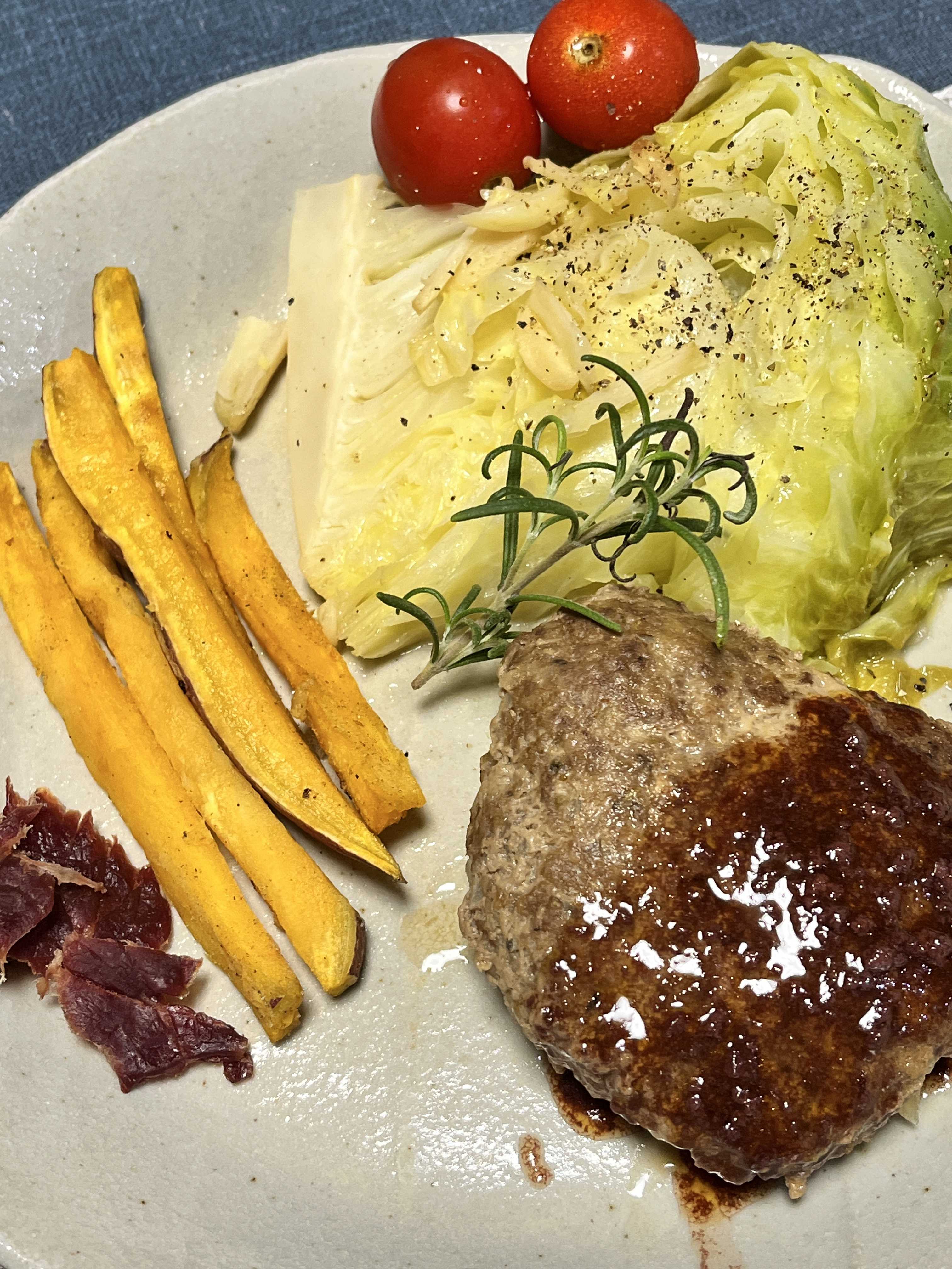 ハンバーグ美味しくできました☺️ソースはハンバーグを焼いた後の脂に赤ワイン他色々煮詰めてできたソース我ながら絶品😋😋キャベツはたっぷり食べたかったのでにんにくと白ワインで蒸し焼きに💕パルメザンチーズとブラックペッパーをかけていきます😉ご近所さんから頂いたさつまいも🍠は素揚げにして塩とブラックペッパーで😄これまたご近所さんから頂いた柿はクリームチーズと干し葡萄を混ぜてオリーブオイルで👌今日もALMONDEディナー大成功❣️❣️宍道湖のしじみで、今日のお酒はプラマイゼロ😊親父の晩御飯ハンバーグドミグラスソースキャベツの白ワイン蒸しサツマイモ素揚げビーフジャーキーミニトマト柿とクリームチーズのオリーブオイル和え枝豆自家製スモークチーズ小豆島産新漬けオリーブ お寄りいただけたら幸いですm(__)m今日の晩ごはん#おうちごはん#晩ごはん#晩酌#旬#旬の食材#旬の野菜#おいしい#美味い#ご当地グルメ#ご当地