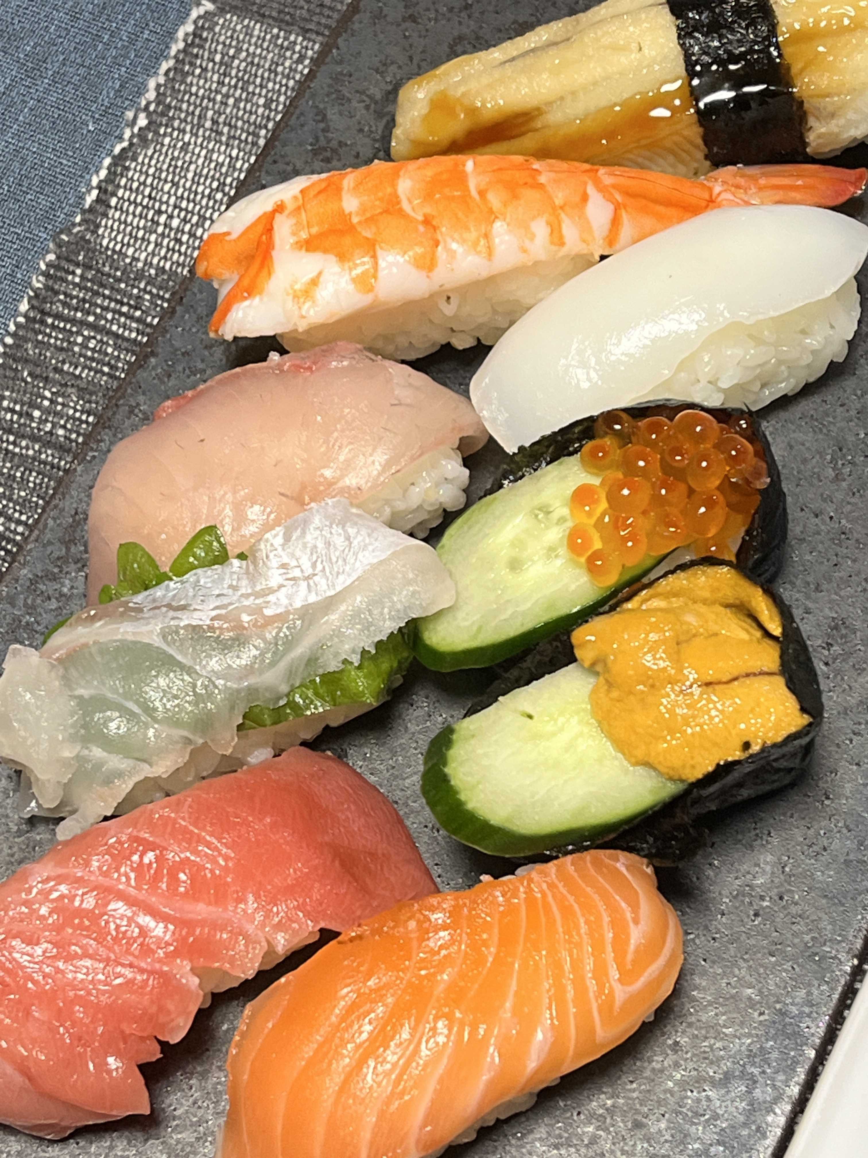 奮発して近所の百貨店でお寿司🍣買ってきた❣️中トロ美味しかった🥰あとはALMONDE✌️昨日いただいた冬瓜は揚げと生姜🫚であっさり炊きとろみをつけて枝豆は塩味とワサビ風味の2種にして拾ってきた銀杏はチンして塩でいただきました銀杏ってすごく栄養あるらしい👍食べ過ぎ注意なので少しづつ🤏六趣のロックが美味しい品々でした😋親父の晩御飯握り寿司9巻冬瓜と揚げの生姜煮枝豆塩味枝豆わさび風味銀杏青森産黒にんにく長芋焼酎六趣 お寄りいただけたら幸いですm(__)m