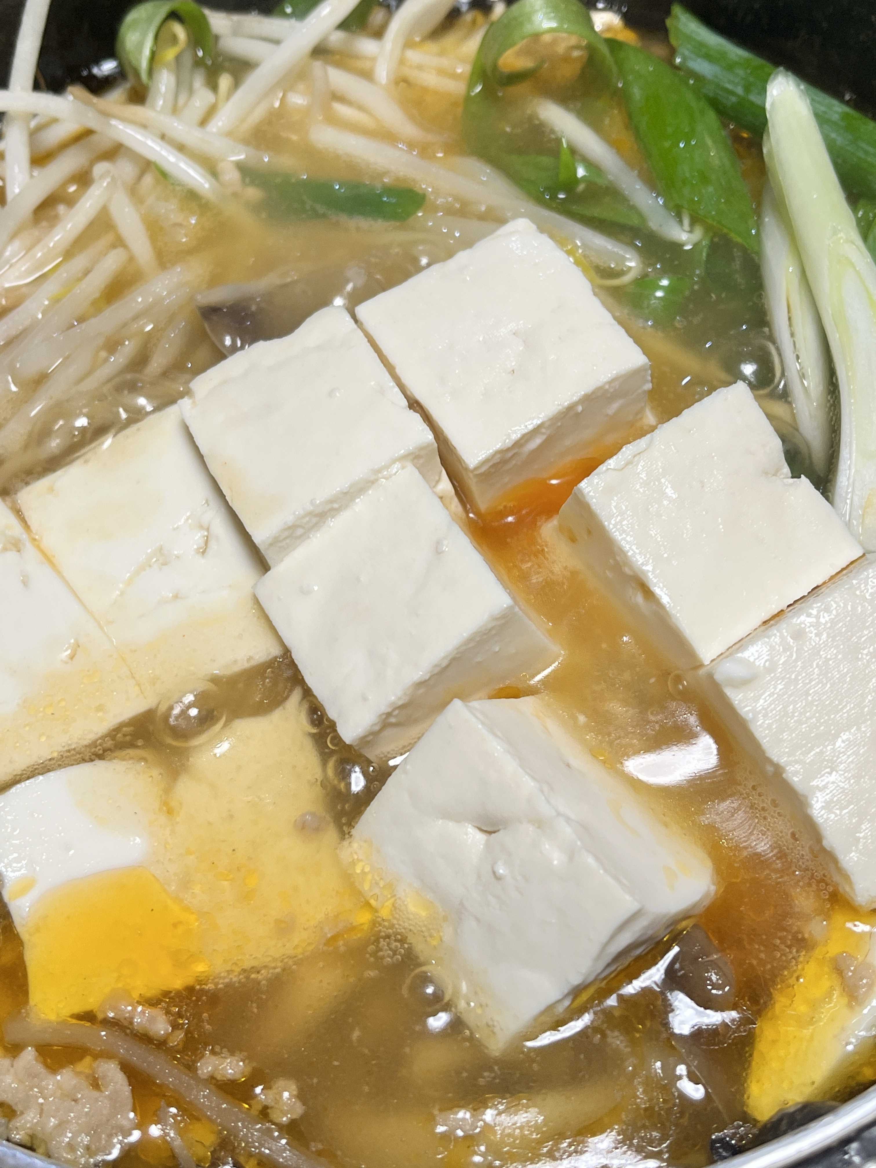 今日も寒かったので豆腐のお鍋です♪にんにくと生姜を胡麻油で熱し豚ミンチを炒めたらきのこ、葱、もやしでお豆腐💕とろみをつけたらポッカボカのお鍋です😋締めにおうどん山椒をたっぷり振って💕💕ズリも美味しかったです♪今日も焼酎お湯割りがすすむお家居酒屋でした🏮 お寄りいただけたら幸いですm(__)m