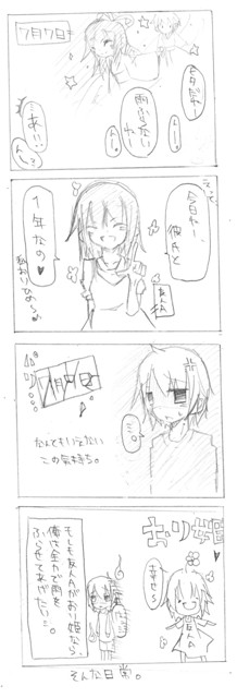 1日遅れましたっ七夕漫画…いや、4コマですwgdgdですが、生温かい目で見てやってください(´・ω・`)ちょっとやっぱり自分が悲しくなってry