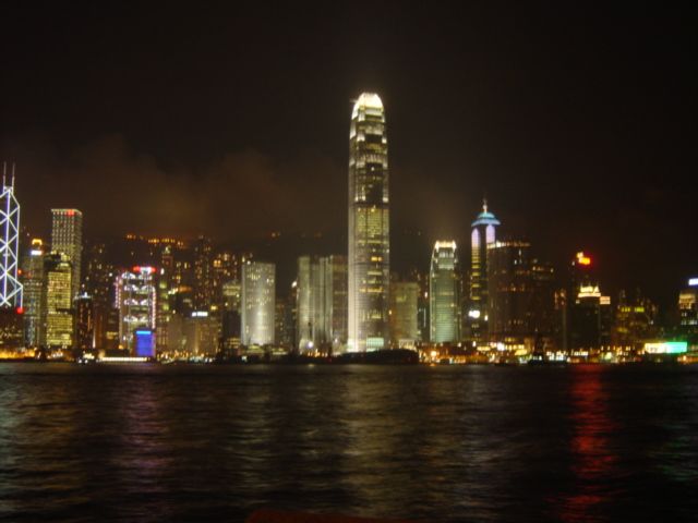 香港で一番背の高い建物が「IFCビル」という高層ビルで、ひときわ目立つ存在です。下の画像で左端に写っているのが、私が以前「波動砲ビル」と勝手に命名したこともある、そのビルです。9月が近づいて、少し暑さが和らいできた香港ですが、日中は、まだまだ暑くてハンドタオルが手放せません。そんな気候なので、香港で太陽に一番近いこのビルは、目一杯「熱カロリー」を吸収してビル内に蓄えてしまいます。その蓄えられた膨大な熱カロリーは、短時間で全てを放射することができず、少し暑さが治まる夜になると、熱が湯気のようになって夜空に上がっていく幻想的な光景を目にすることが出来ます。ビルがまるで巨大な煙突のように、モクモクと煙をはきだしている様子がわかりますか?なーんて、ウソです!すいません!!会社からの帰り道、ふと見上げると、ビルの上の雲にライトがあたって煙のように見えたので、ちょっと創作で話を作ってしまいました(笑)でも、本当に頭から湯気をだしているように見えませんか?
