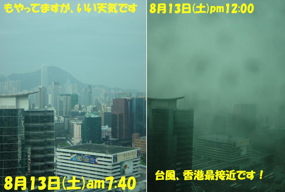 昨日の台風は、無事に香港の北寄りを抜けていきました。現在は、台風一過の快晴とはいかないものの、いい天気になっています。今回の台風は、風よりも雨が激しかった雨台風のようでした。昨晩の香港は、雷雨となり、一晩中ピカピカと雷が光っていました。さて、台風通過ということで、本日より無事に韓国出張にいけることになりました。バタバタと時間のない出張になりそうですが、何か面白いものが見つけられたらいいなと思ってます。
