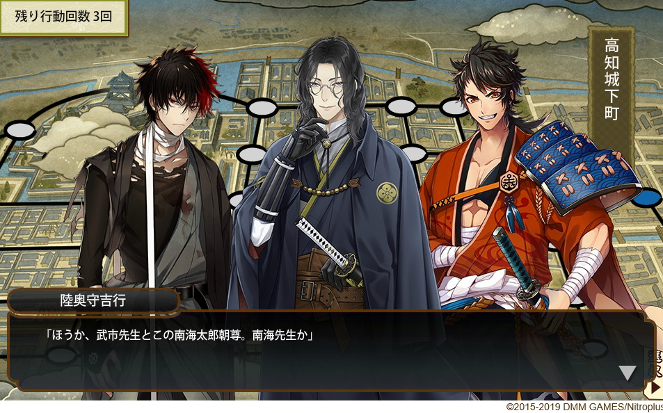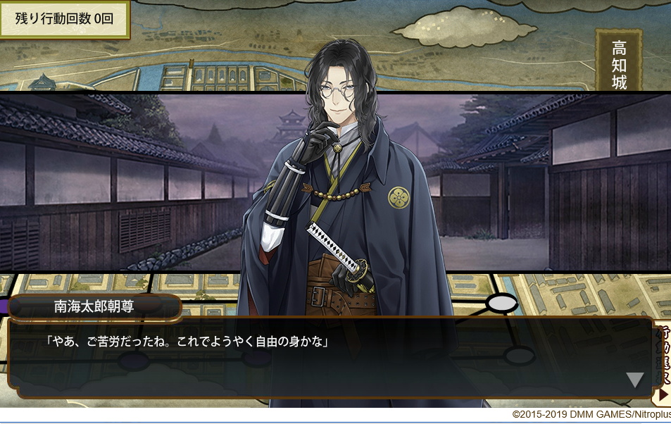 城下町で、先生こと南海太郎朝尊と合流しました。